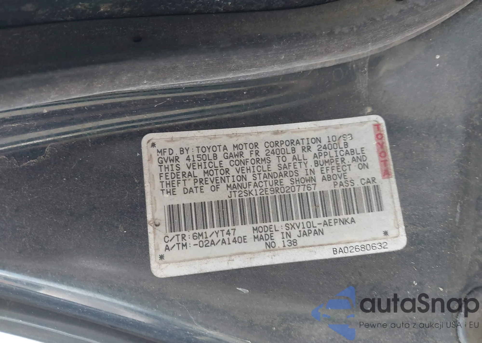 LOT: 42943281 VIN: JTKKT624250095146