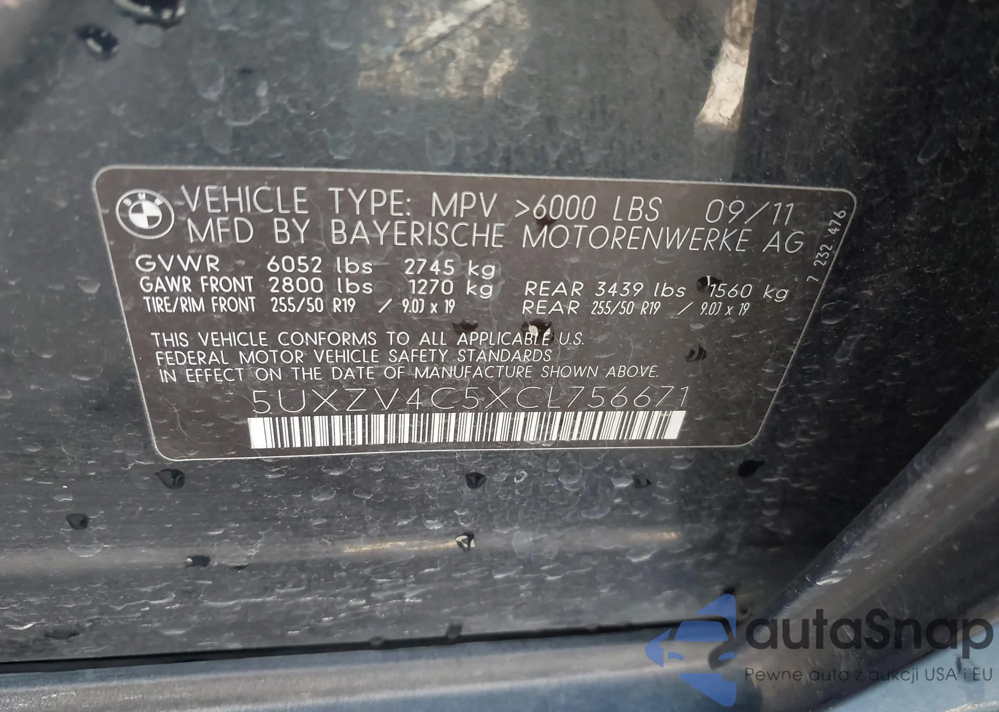 • VIN 5UXZV4C5XCL756671