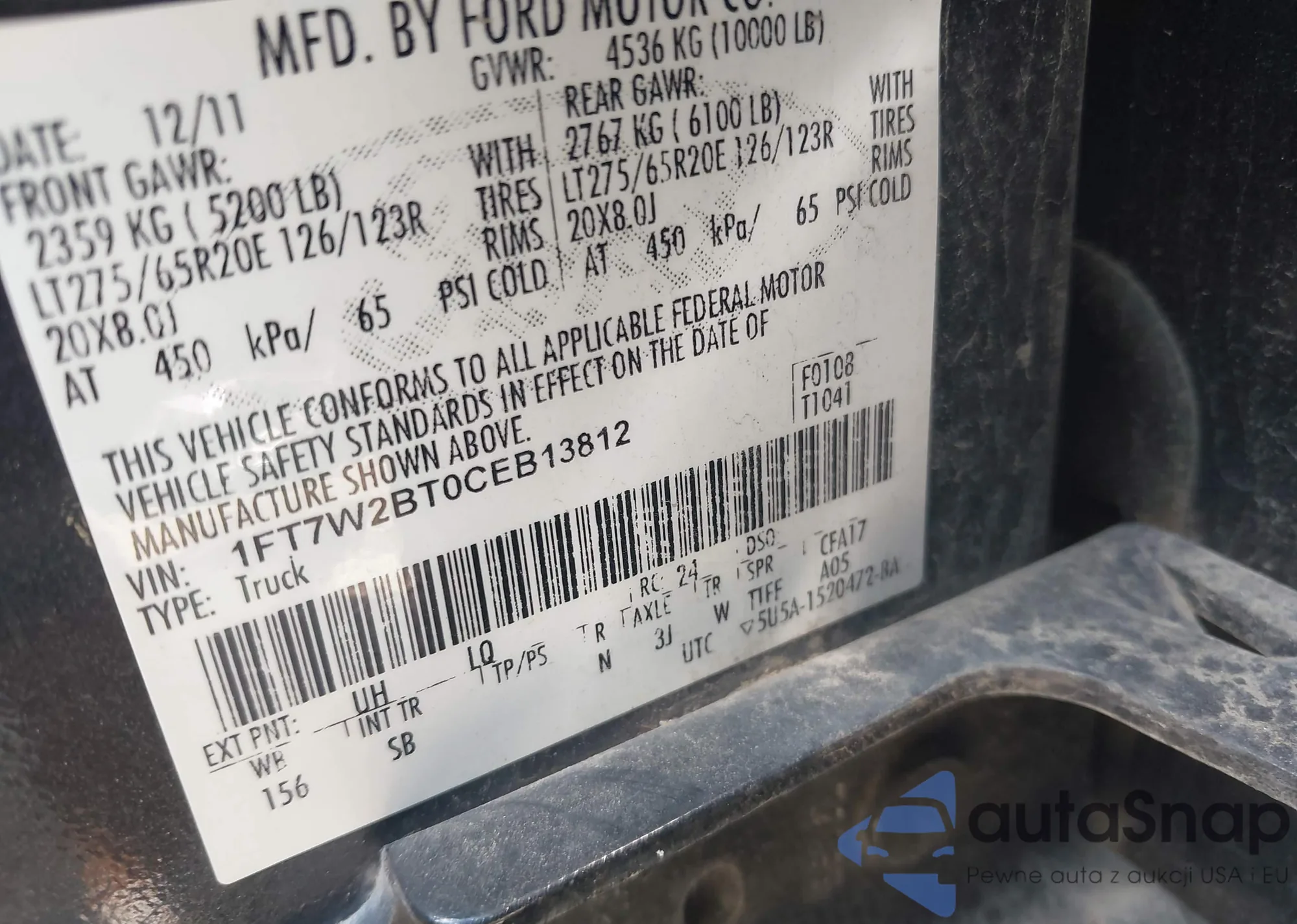 • VIN 1FT7W2BT0CEB13812