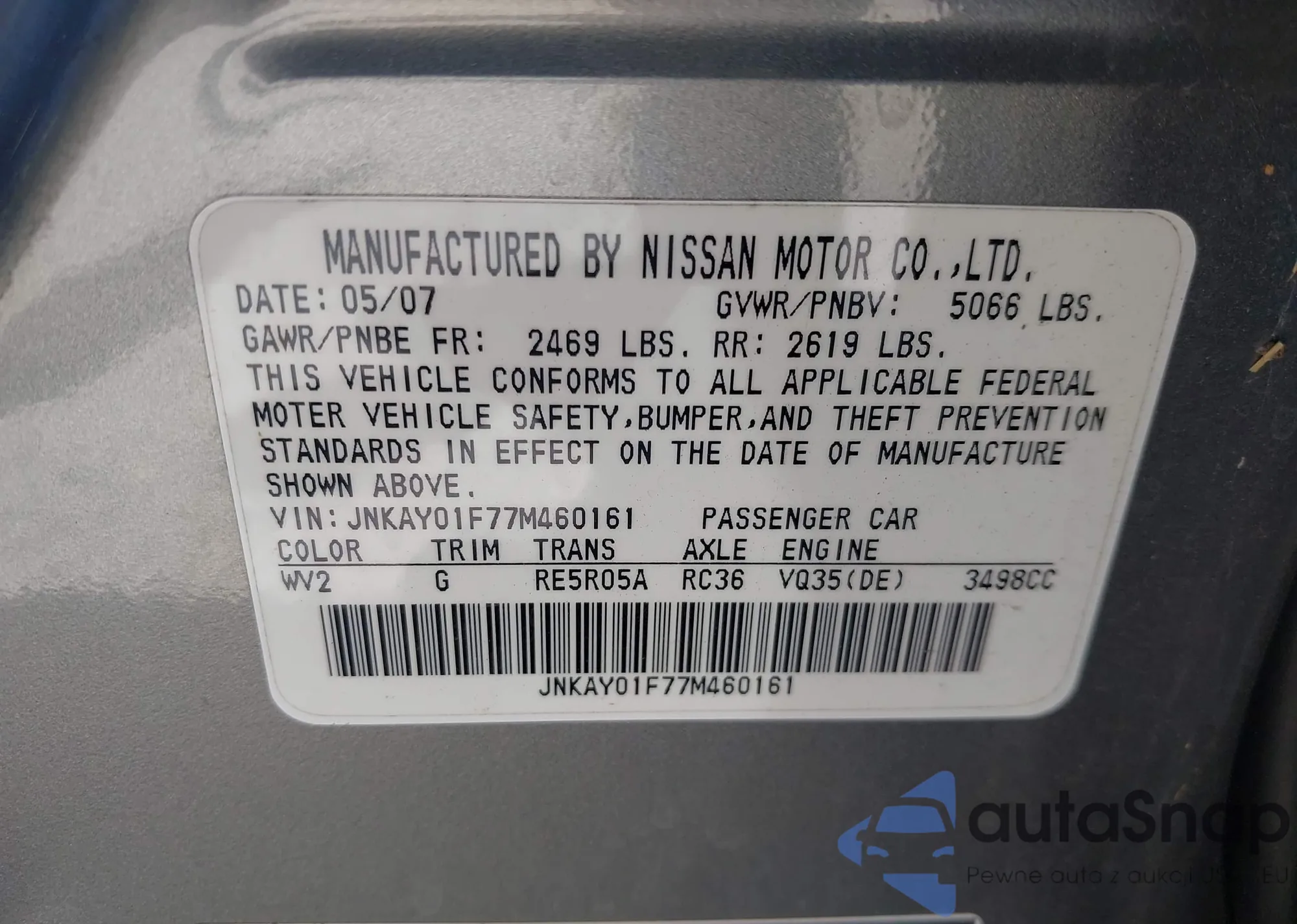 • VIN JNKAY01F77M460161