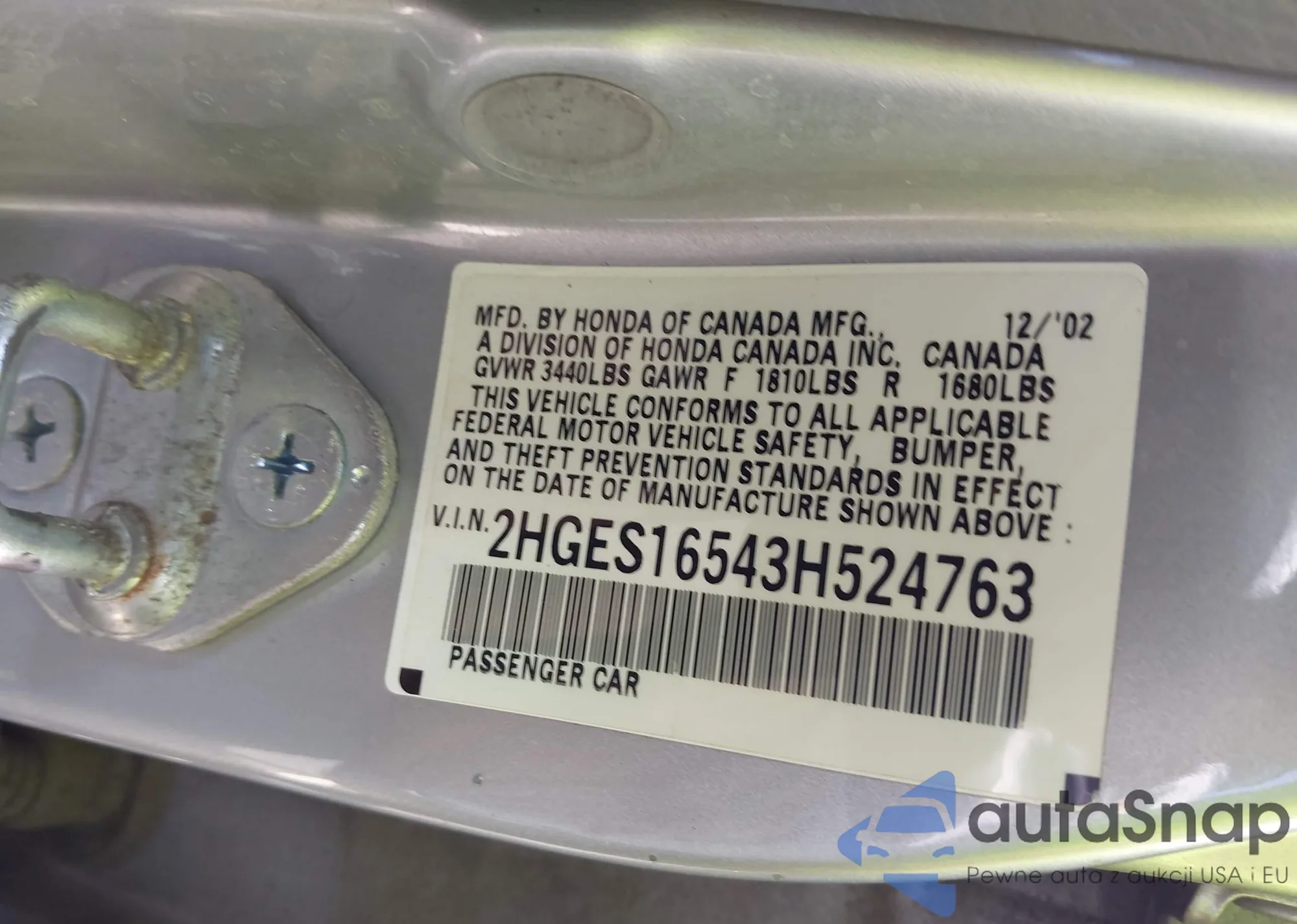 LOT: 43164863 VIN: 2HGES16543H524763