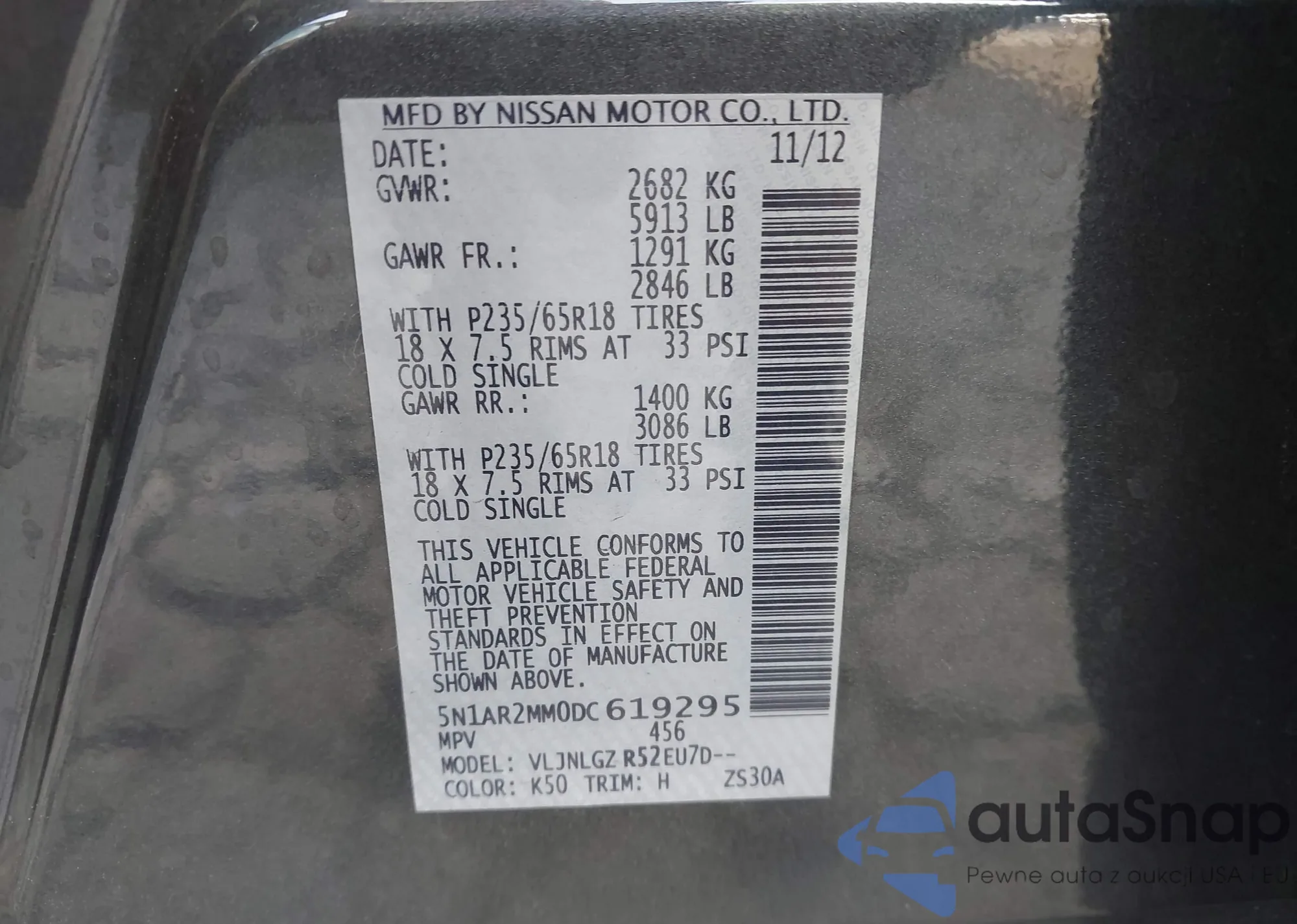LOT: 43198438 VIN: 5N1AR2MM0DC619295