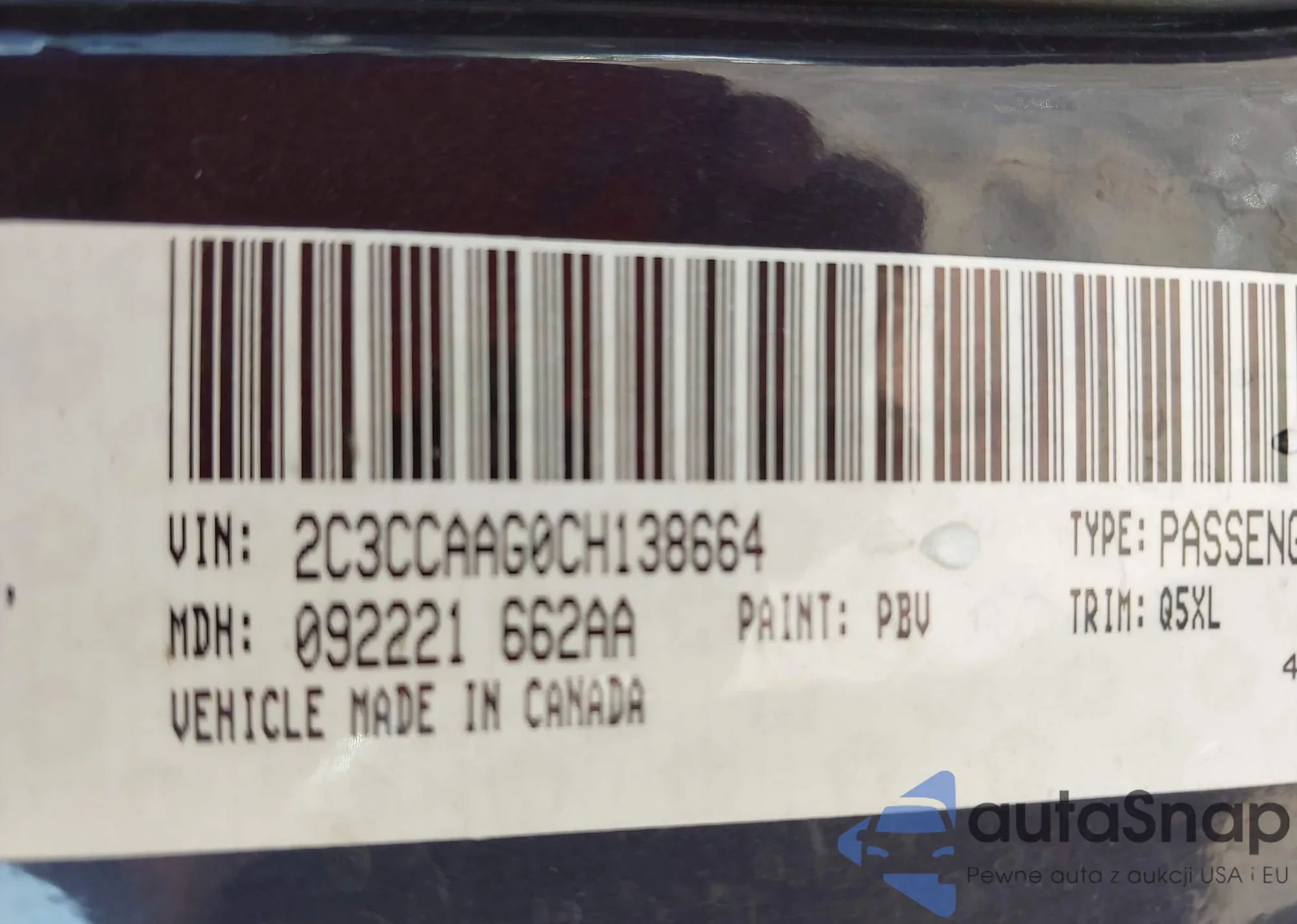 • VIN 2C3CCAAG0CH138664