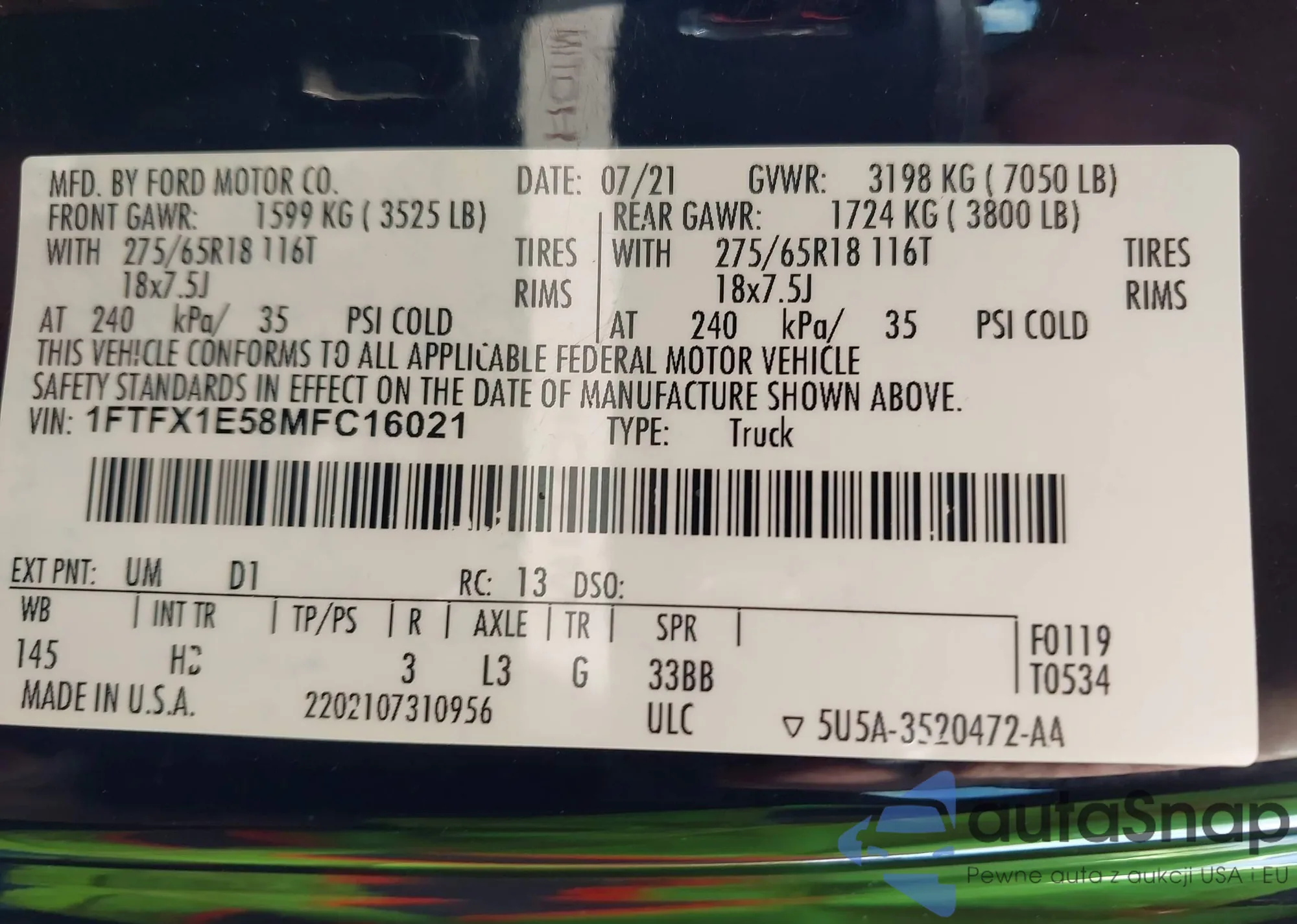 • VIN 1FTFX1E58MFC16021