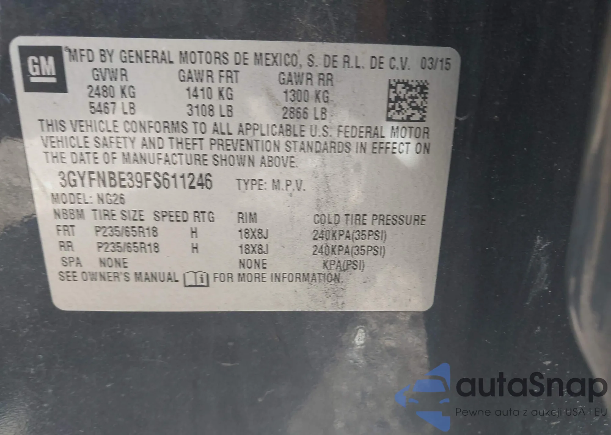 LOT: 43201428 VIN: 3GYFNBE39FS611246