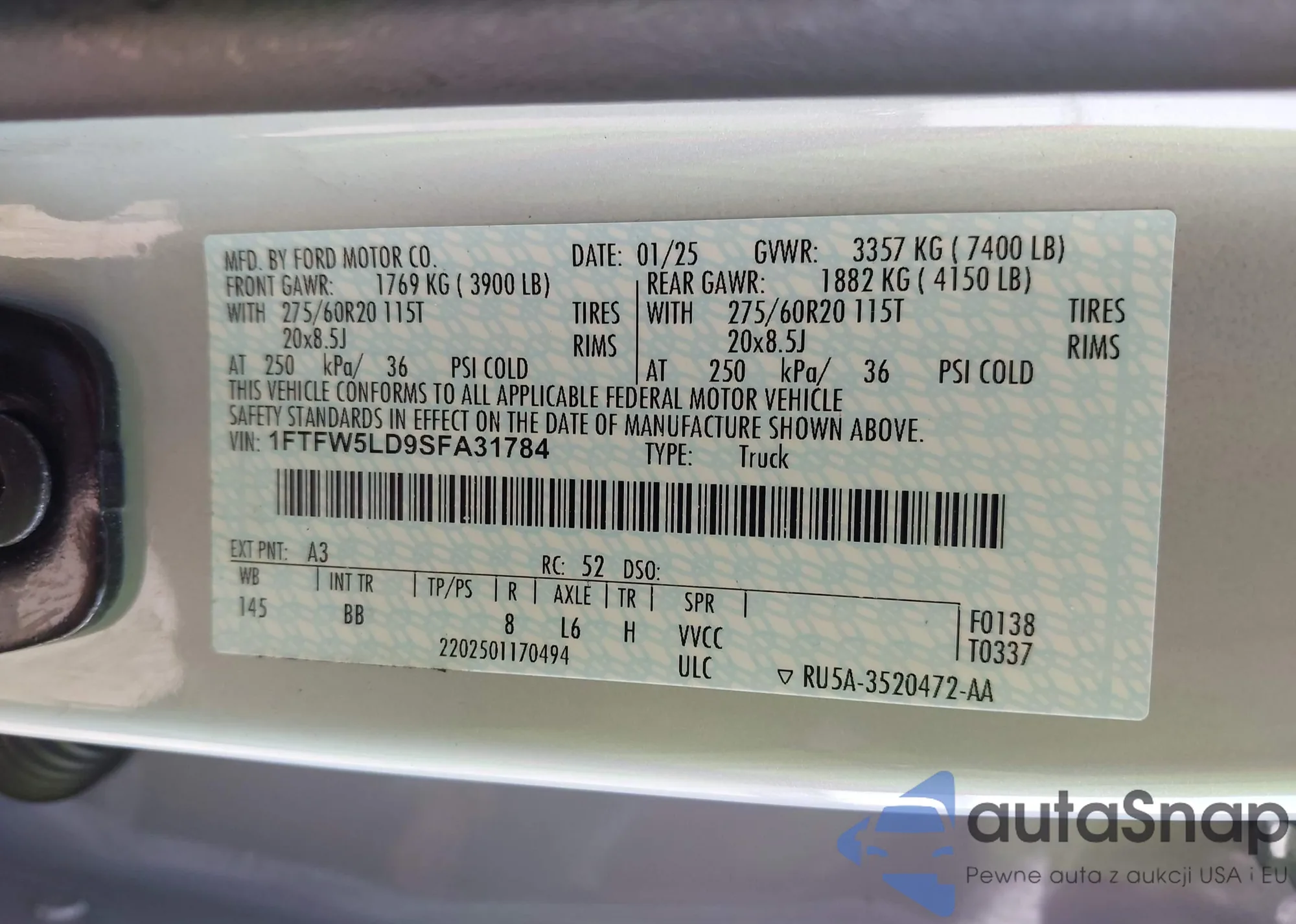 LOT: 42487170 VIN: 1FTPX14548FA37874