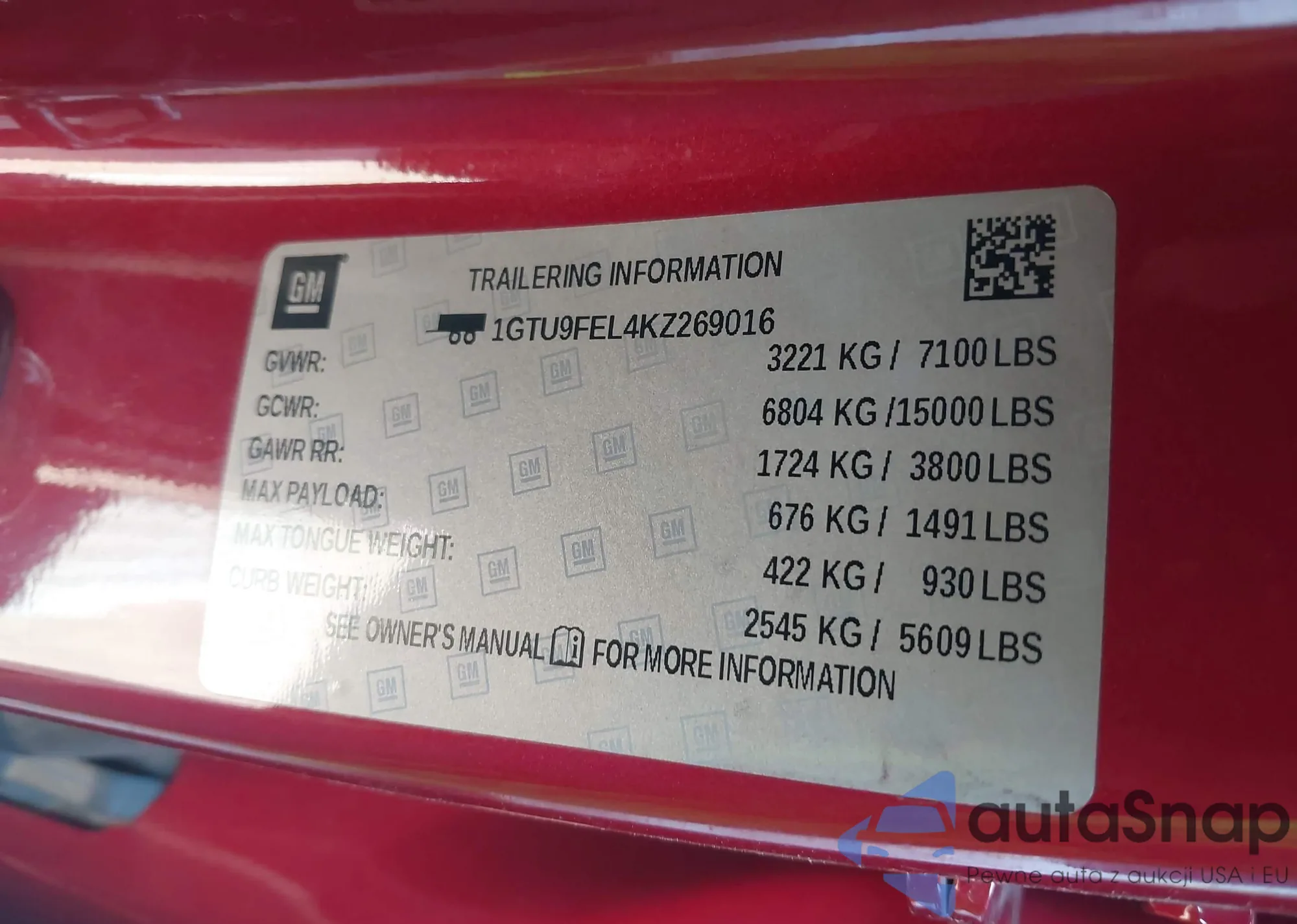 • VIN 1GTU9FEL4KZ269016