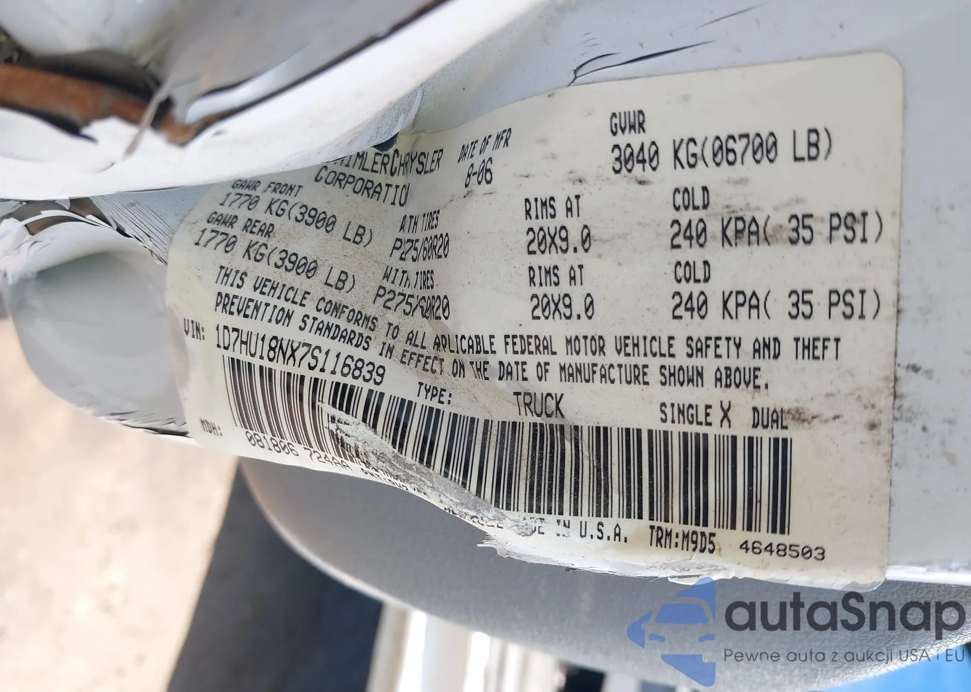 • VIN 1D7HU18NX7S116839