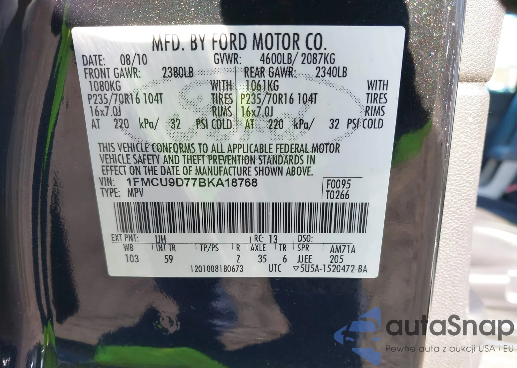 • VIN 1FMCU9D77BKA18768