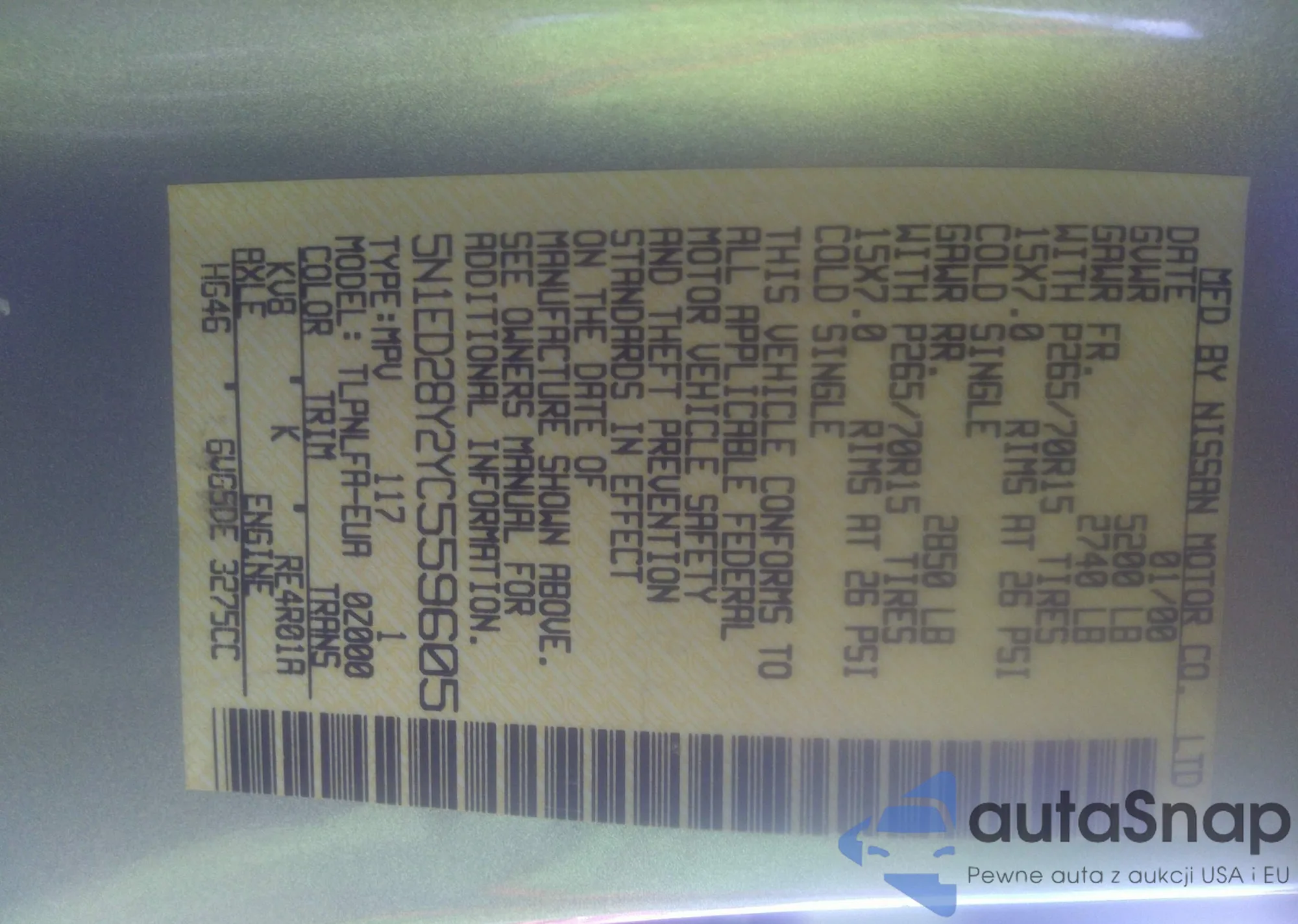 LOT: 41013595 VIN: 5N1ED28Y2YC559605