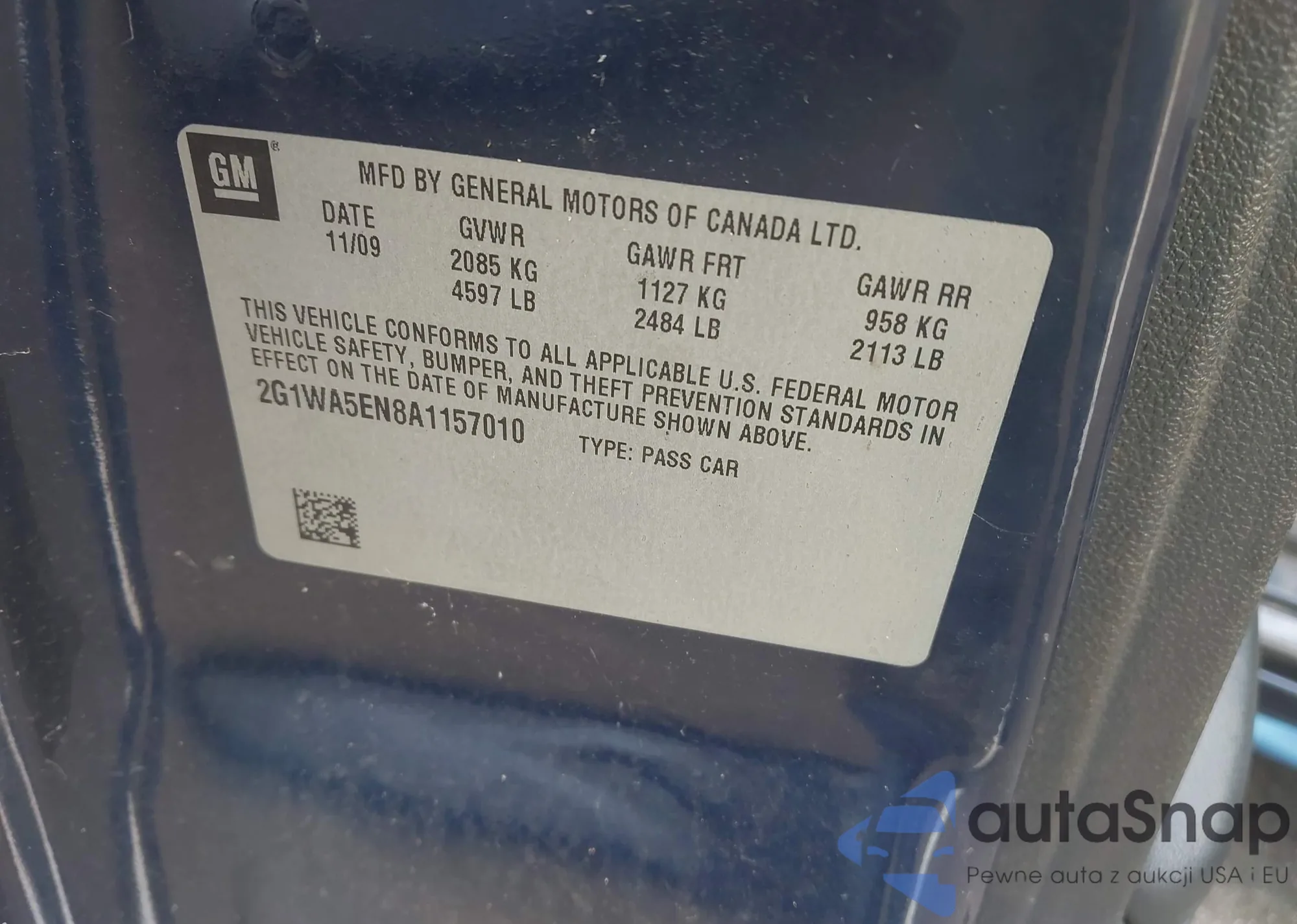 LOT: 42840429 VIN: 1GCFG25M221156857