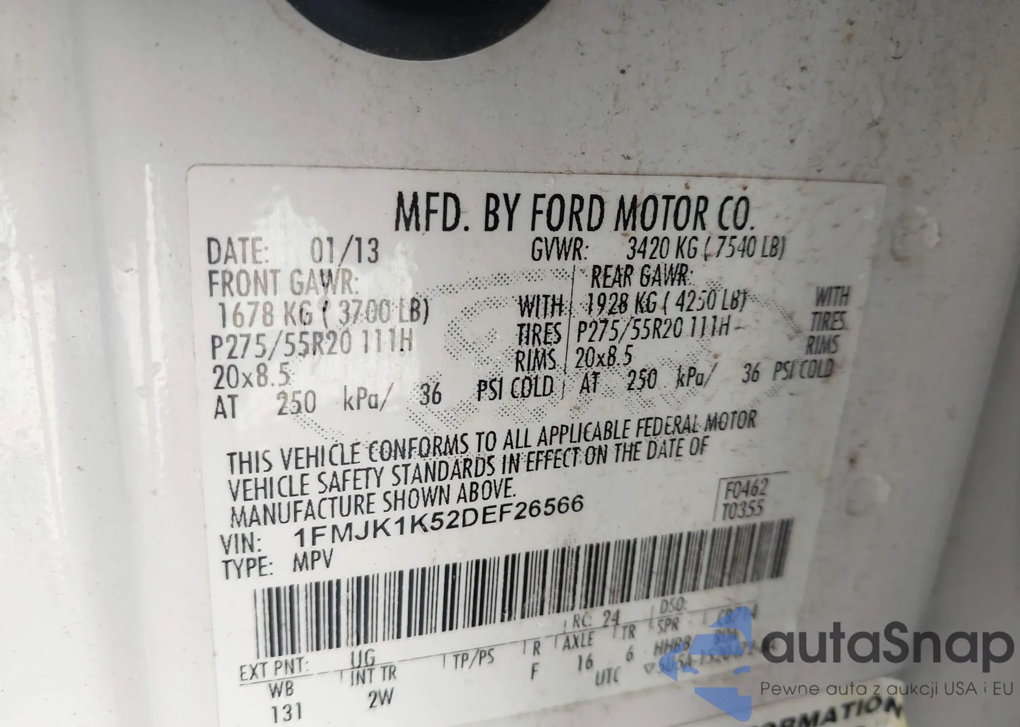 LOT: 43232647 VIN: 1FMJK1K52DEF26566