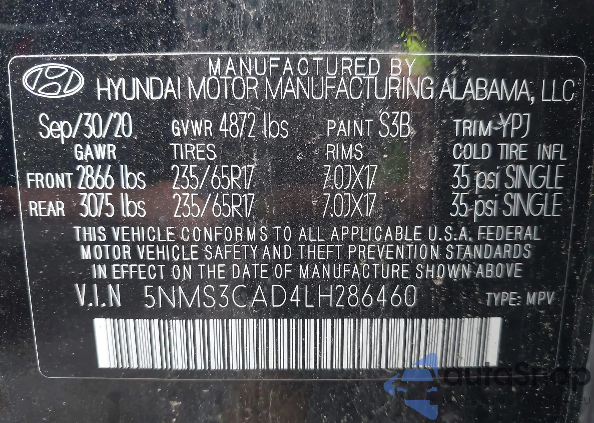 • VIN 5NMS3CAD4LH286460