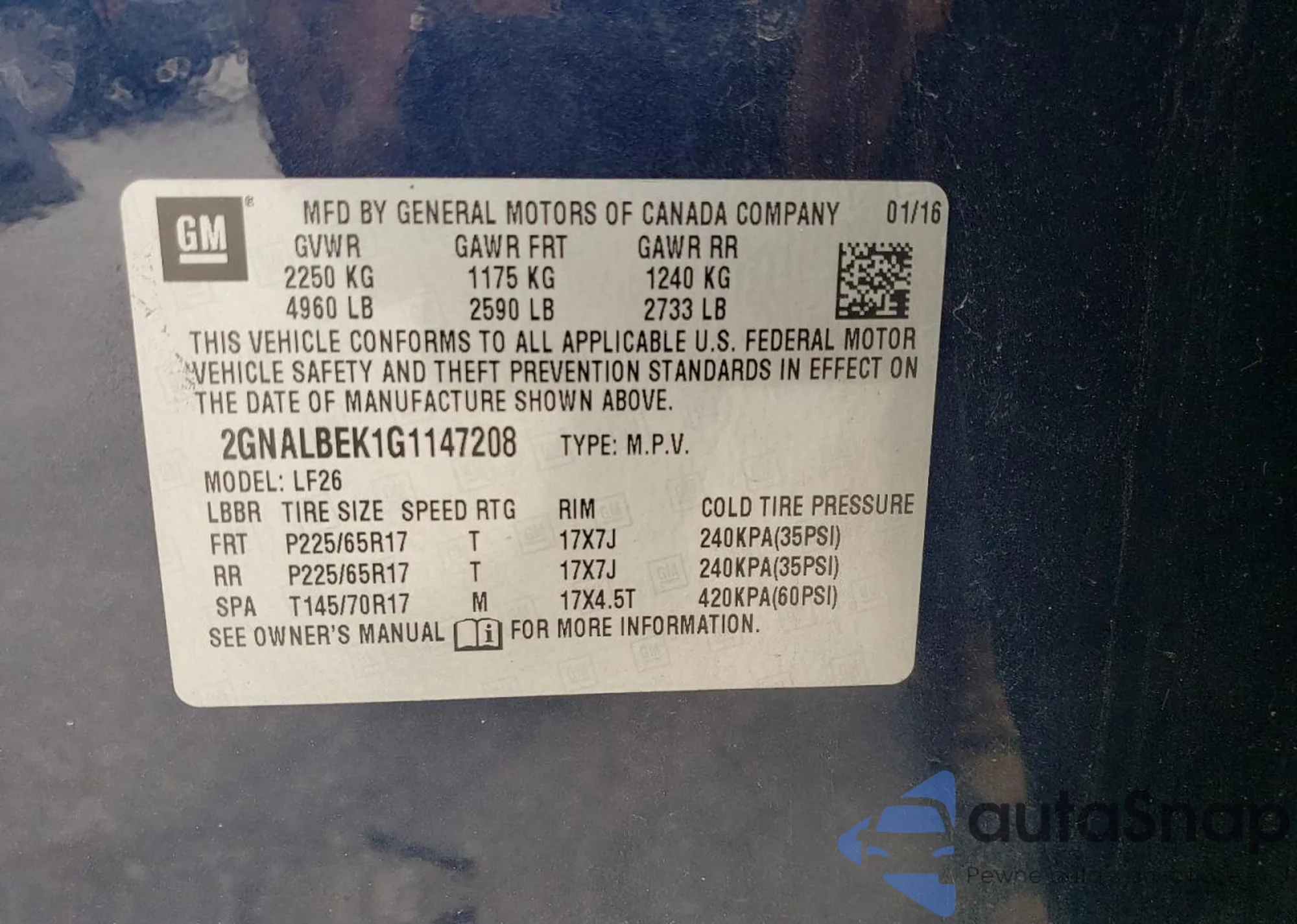 • VIN 2GNALBEK1G1147208