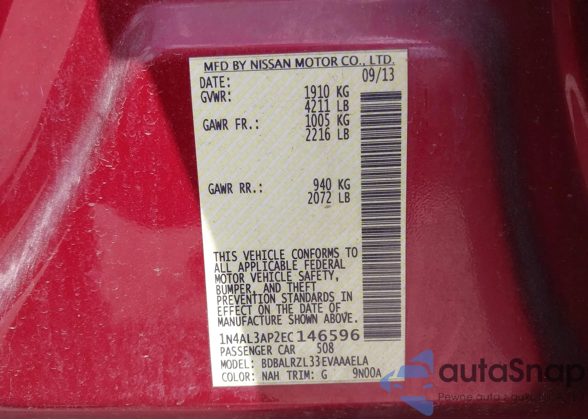 • VIN 1N4AL3AP2EC146596