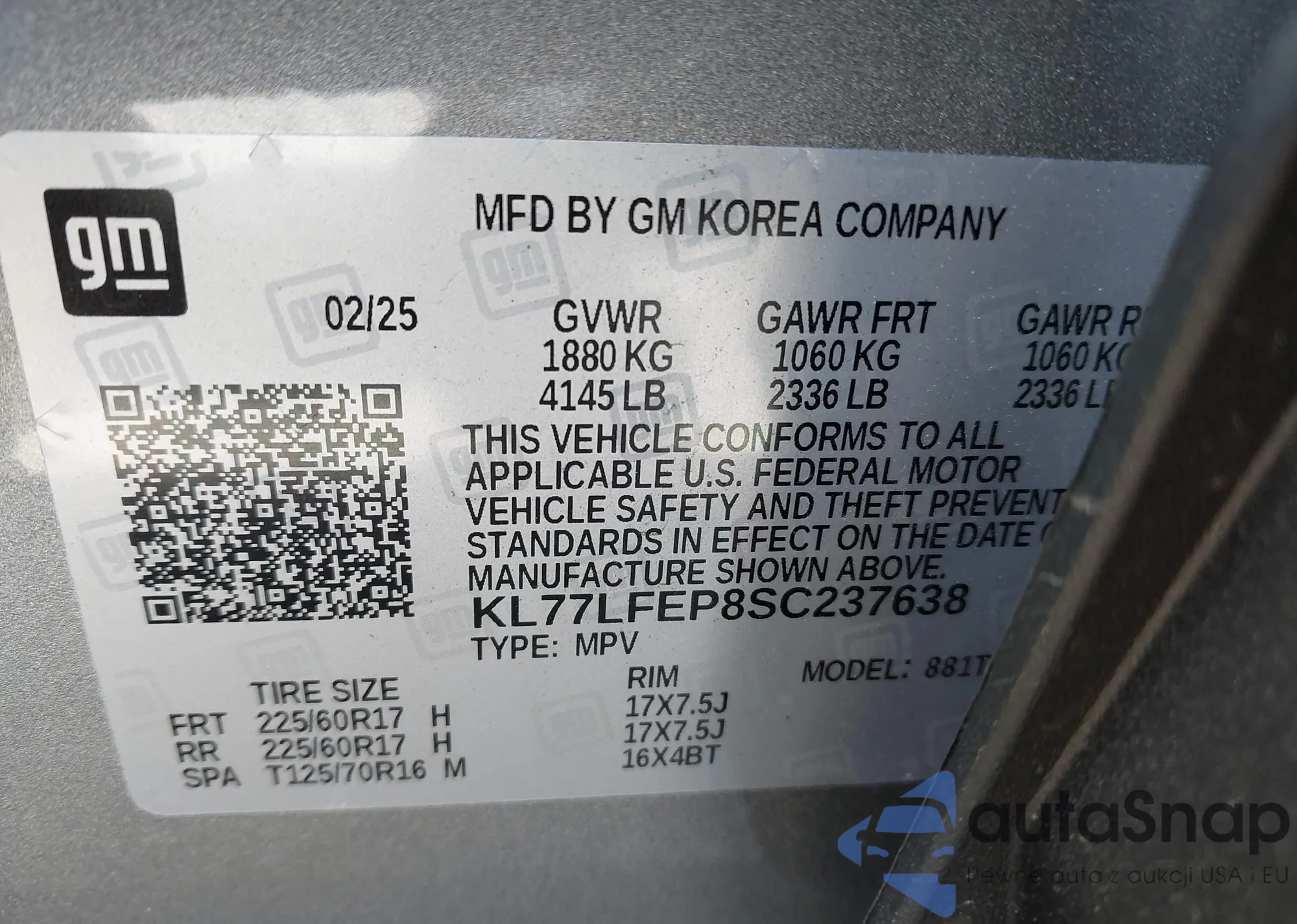 LOT: 43046946 VIN: JN1BJ1CR9HW140078