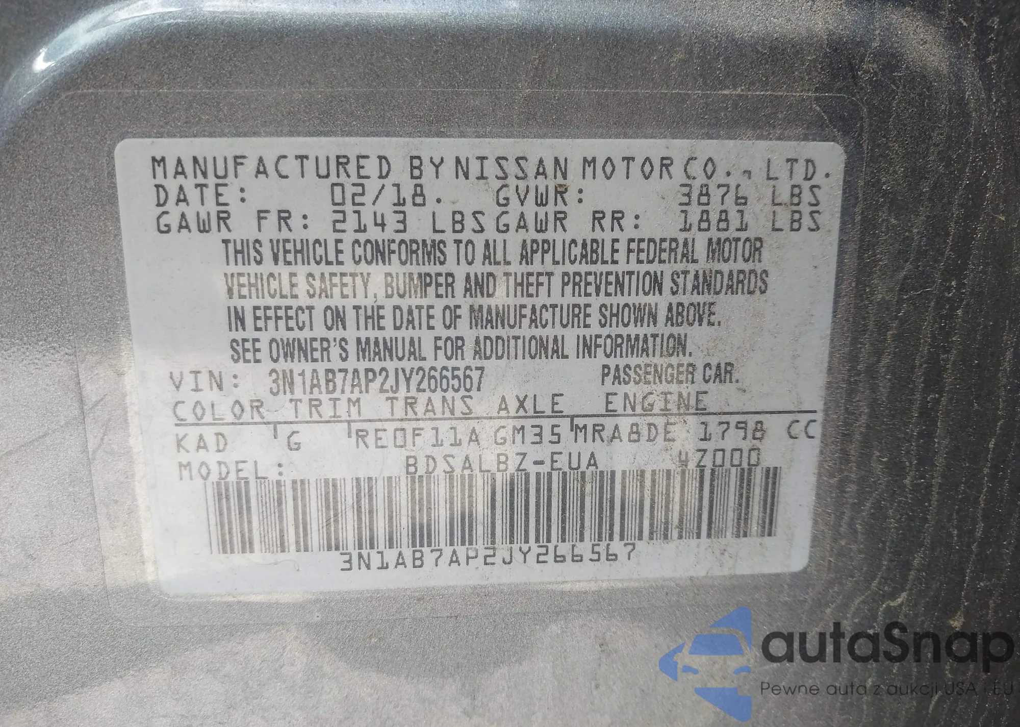 LOT: 42687047 VIN: 3N1AB7AP2JY266567