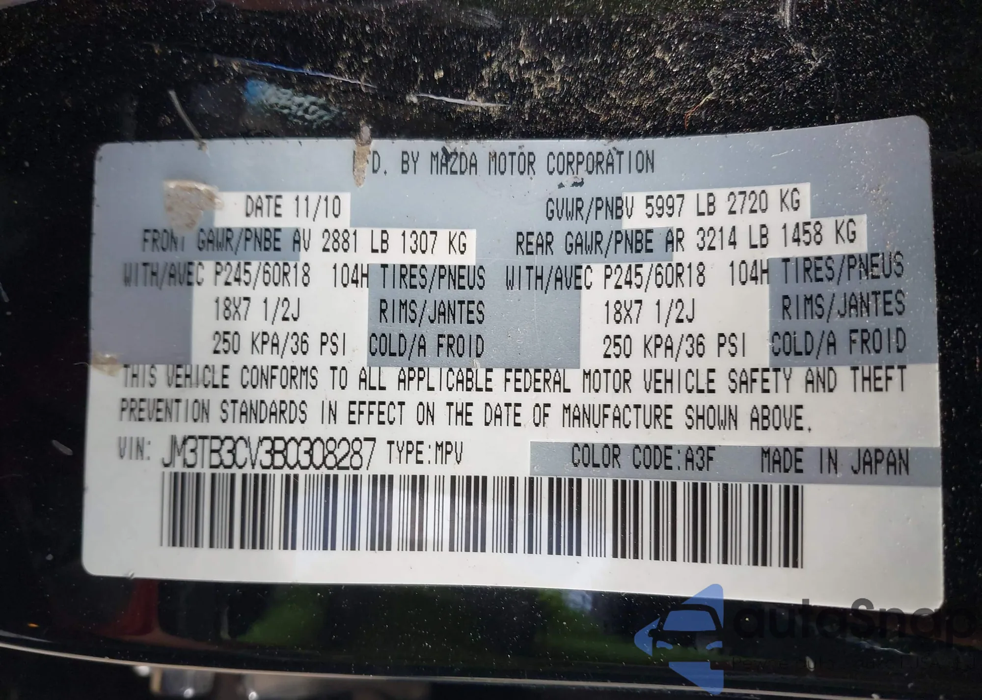 • VIN JM3TB3CV3B0308287