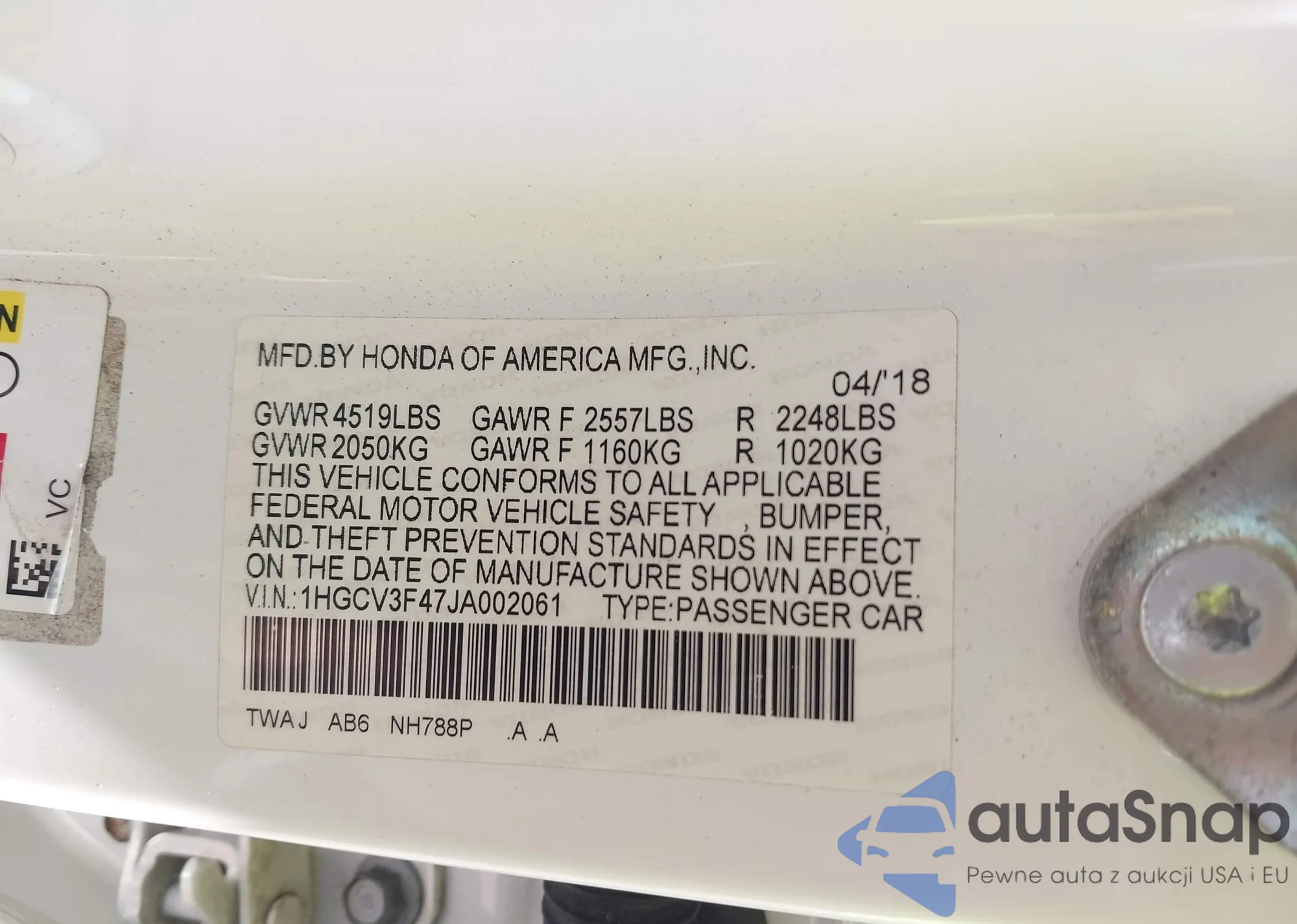 • VIN 1HGCV3F47JA002061