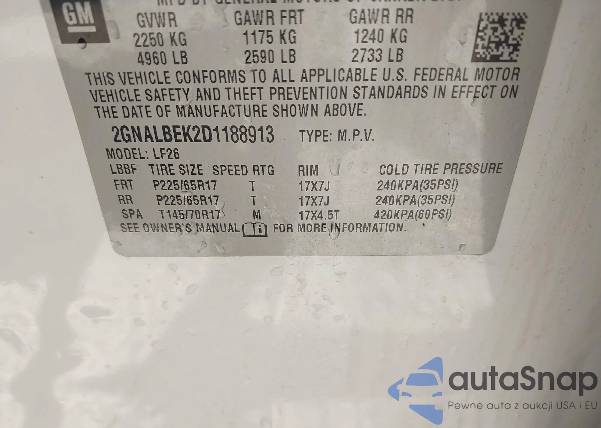 • VIN 2GNALBEK2D1188913