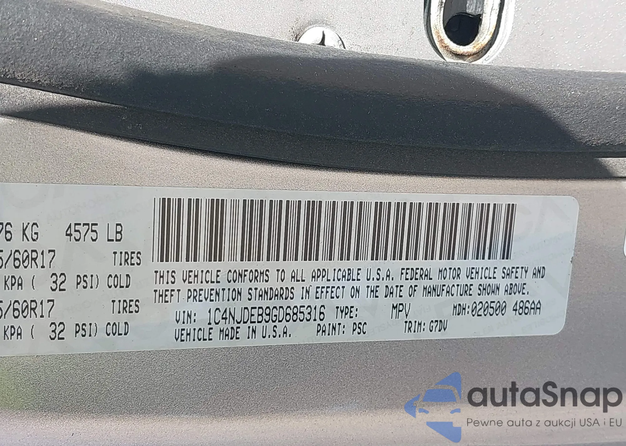 LOT: 43096035 VIN: 1C4NJDEB9GD685316