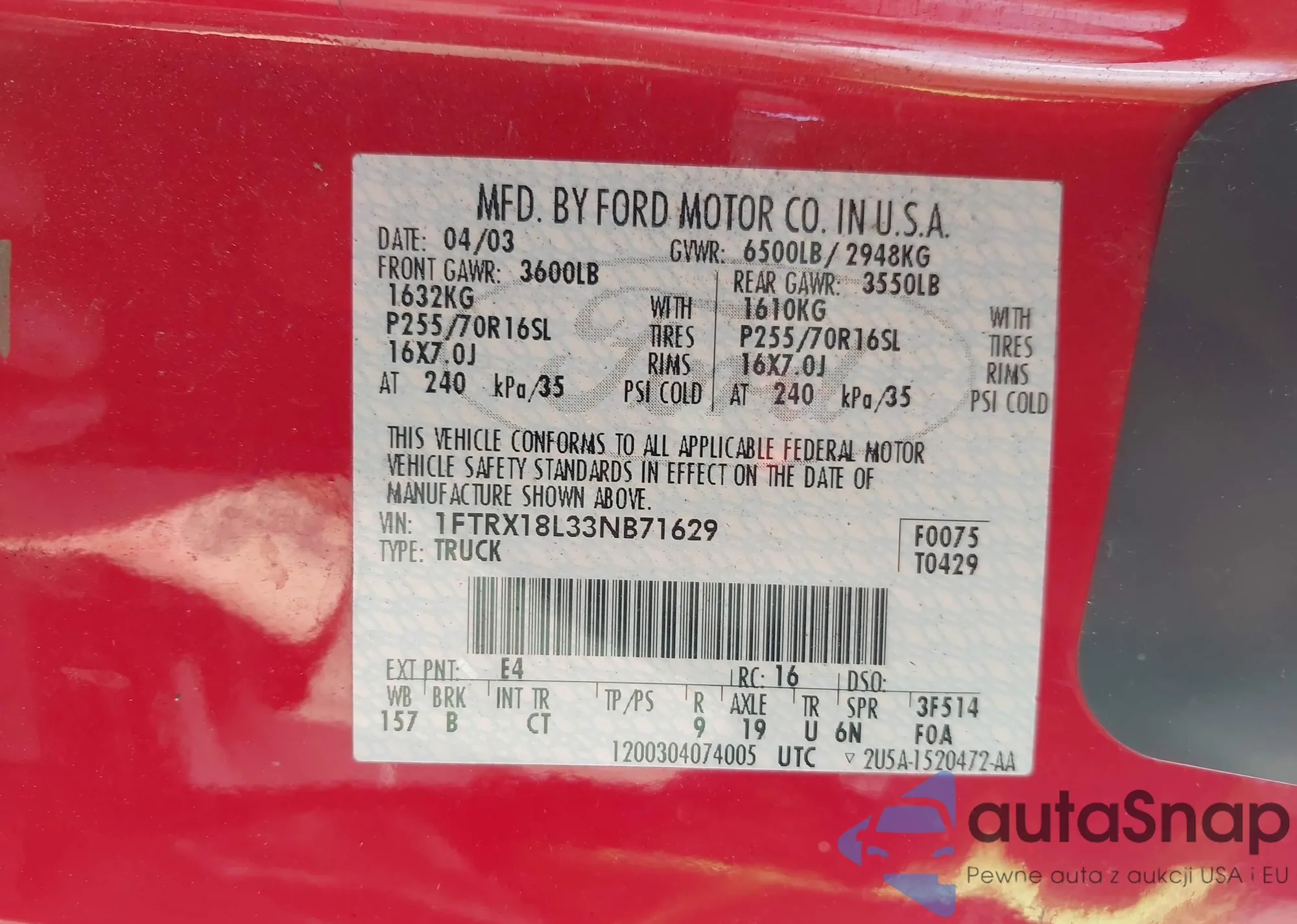 • VIN 1FTRX18L33NB71629