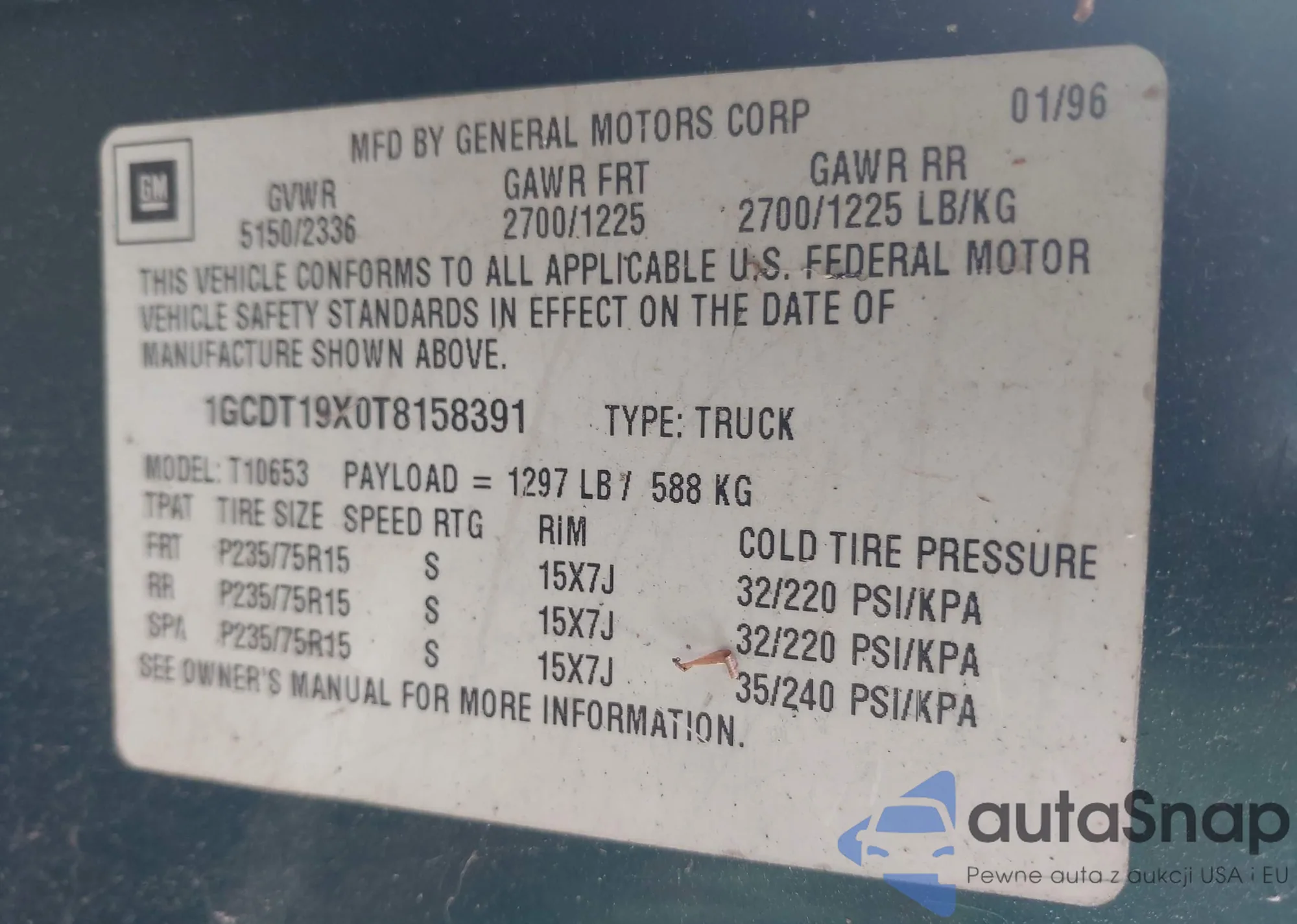 LOT: 43117020 VIN: 1GCDT19X0T8158391