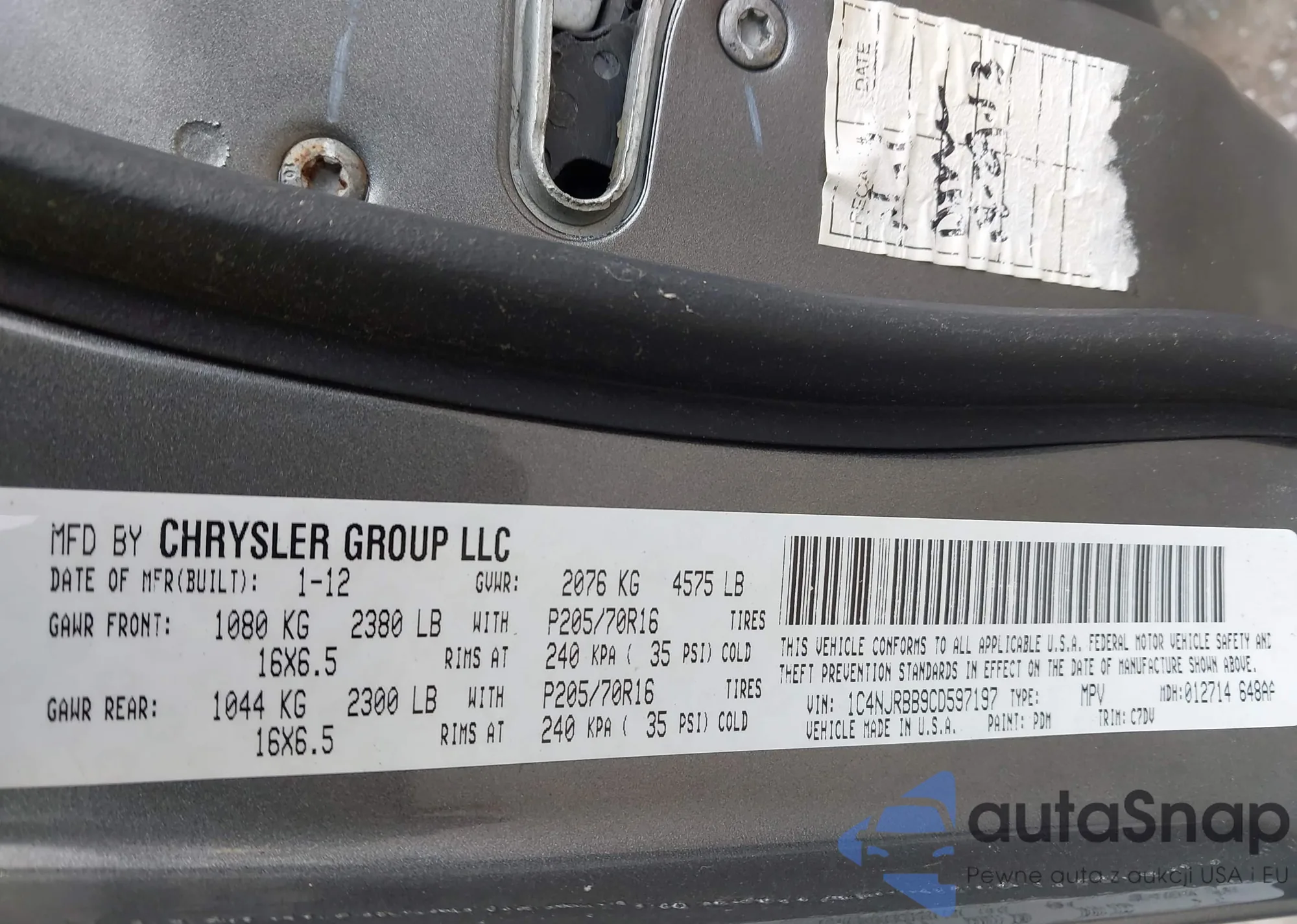 LOT: 43194138 VIN: 1C4NJRBB9CD597197