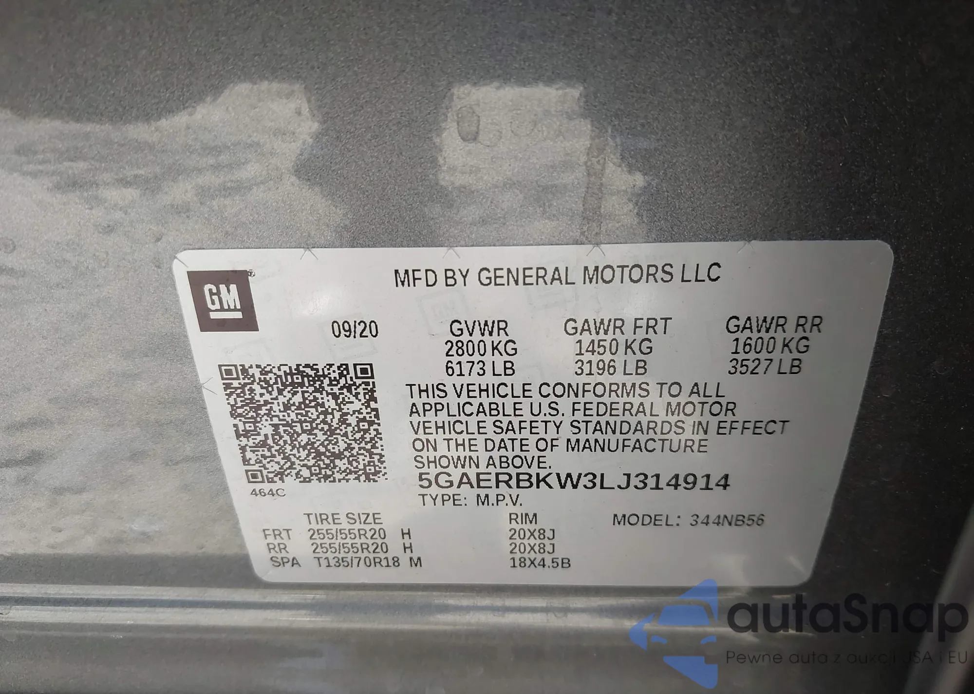 LOT: 42825124 VIN: 5GAERBKW3LJ314914