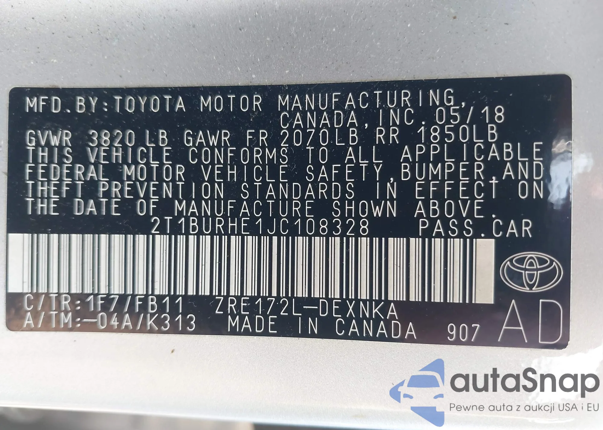 • VIN 2T1BURHE1JC108328