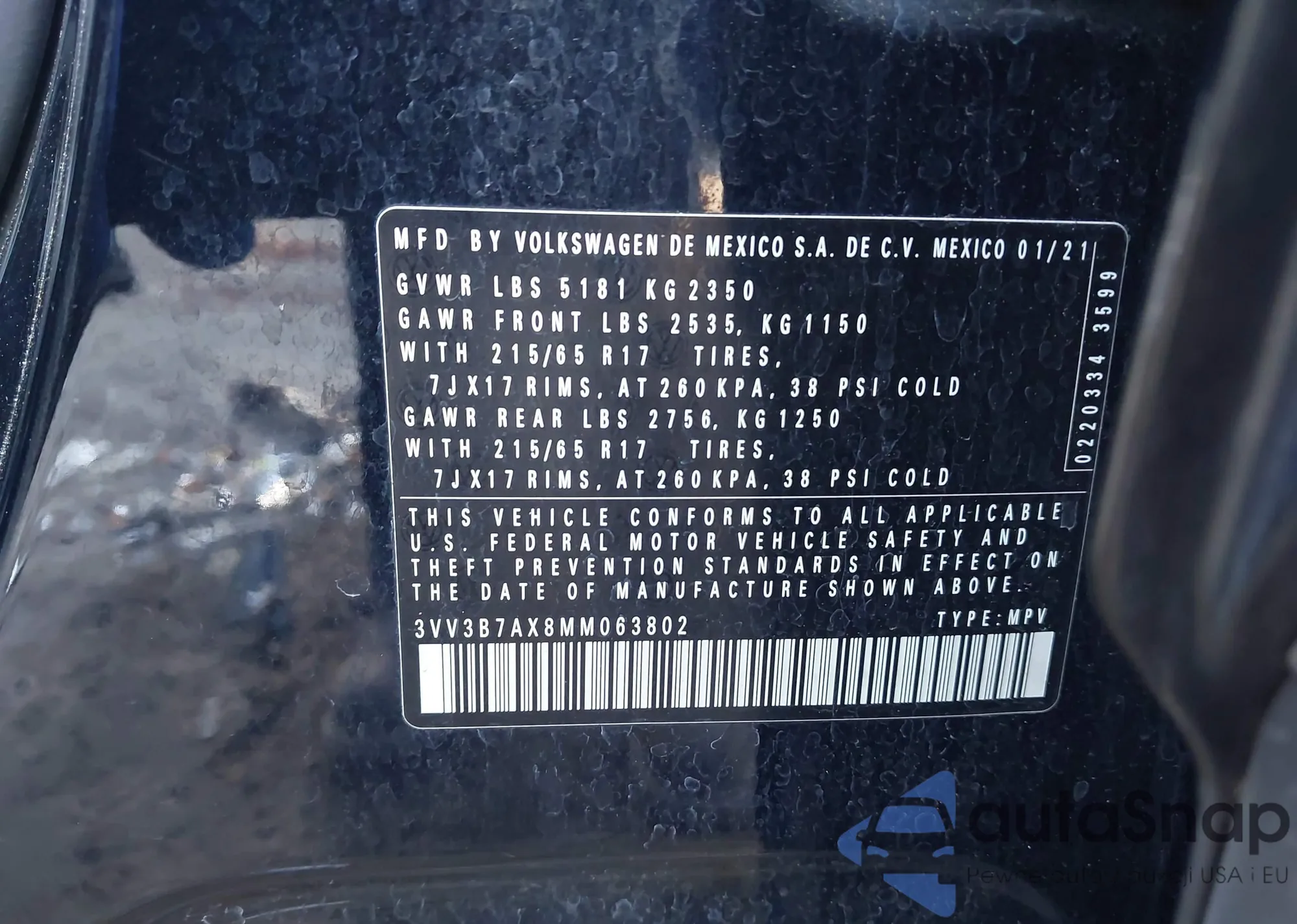 • VIN 3VV3B7AX8MM063802