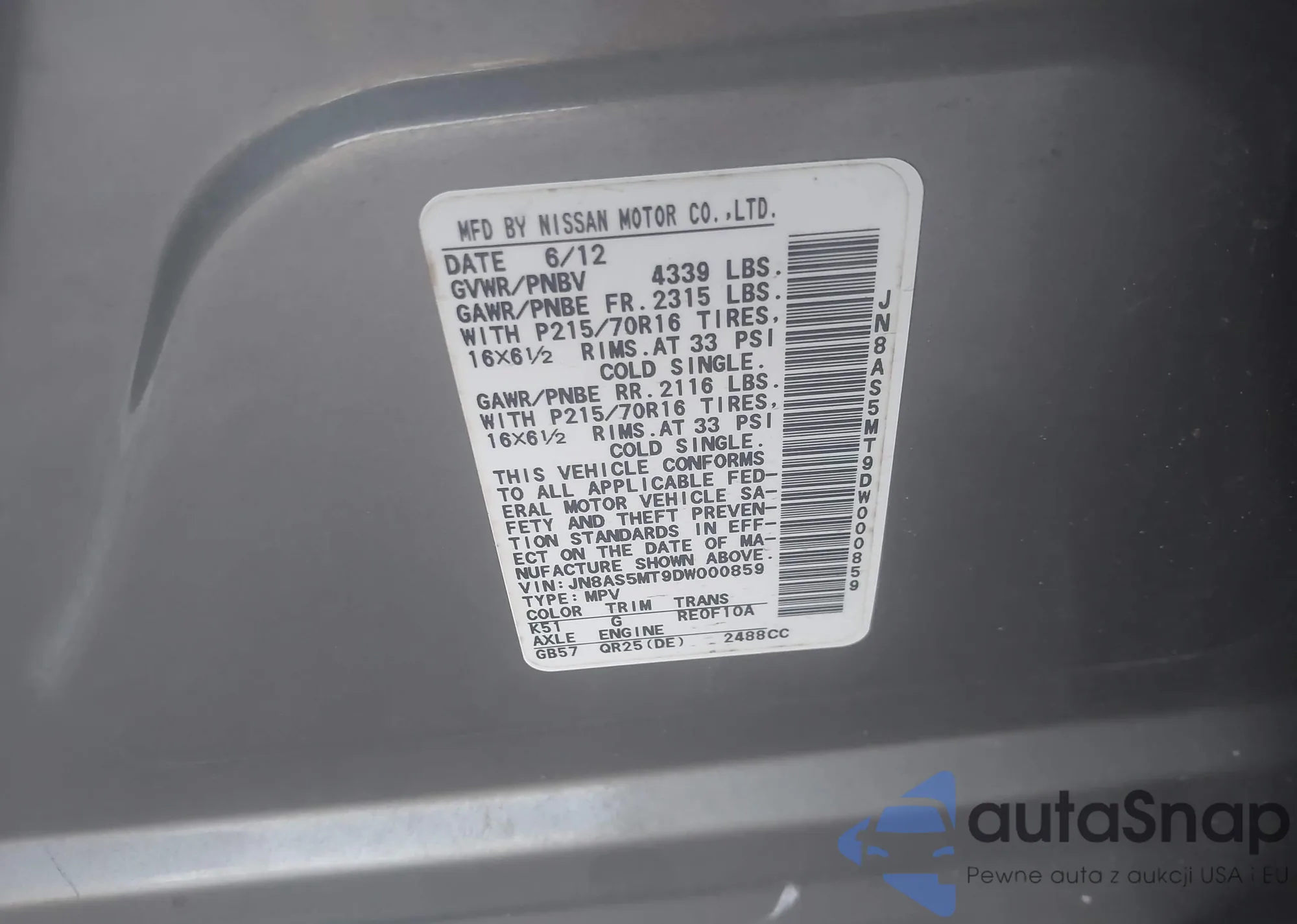 LOT: 43058259 VIN: 5N1DR2MM3JC616237