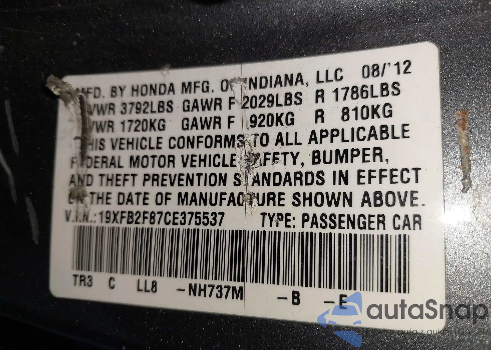 • VIN 2HKRW2H5XKH654284