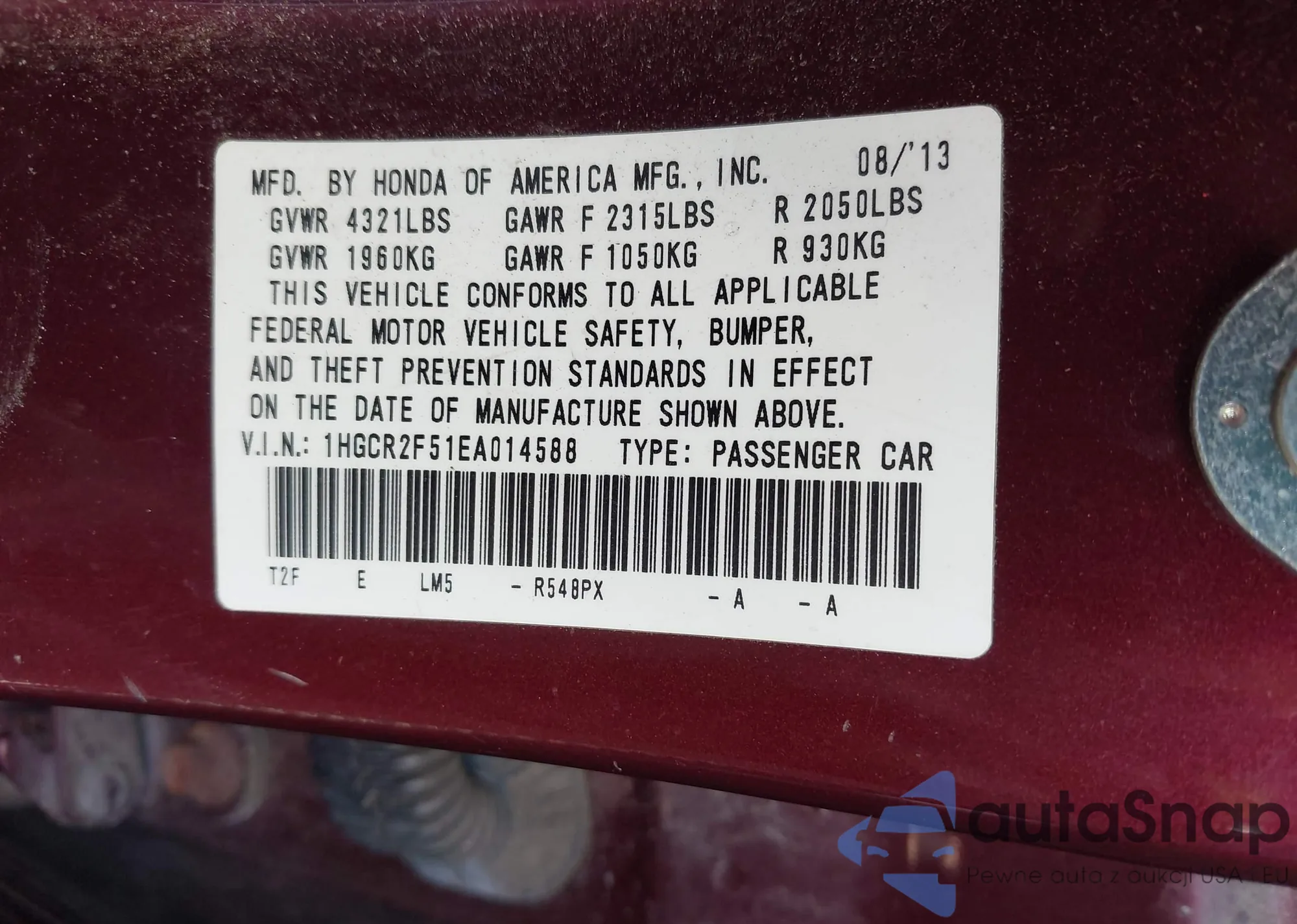 LOT: 43190951 VIN: 1HGCR2F51EA014588