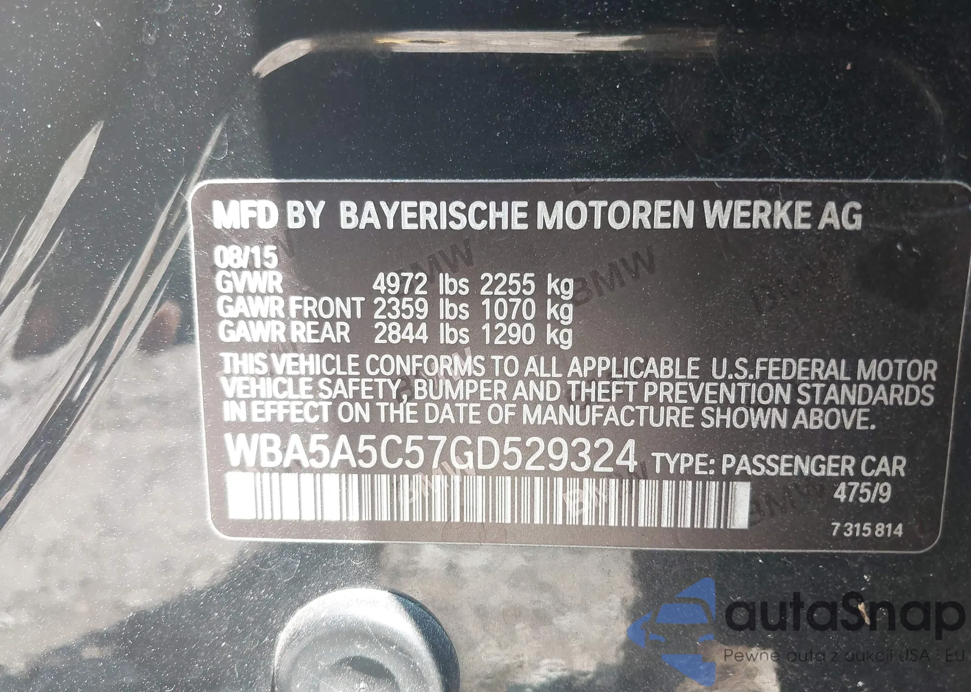LOT: 43147204 VIN: WBA3B5G57FNS19990