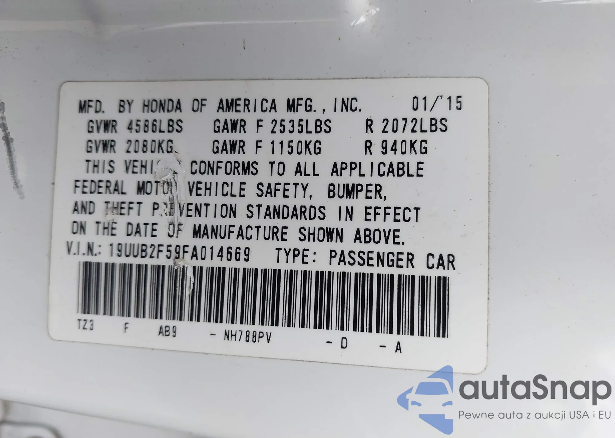 • VIN 19UUB2F59FA014669