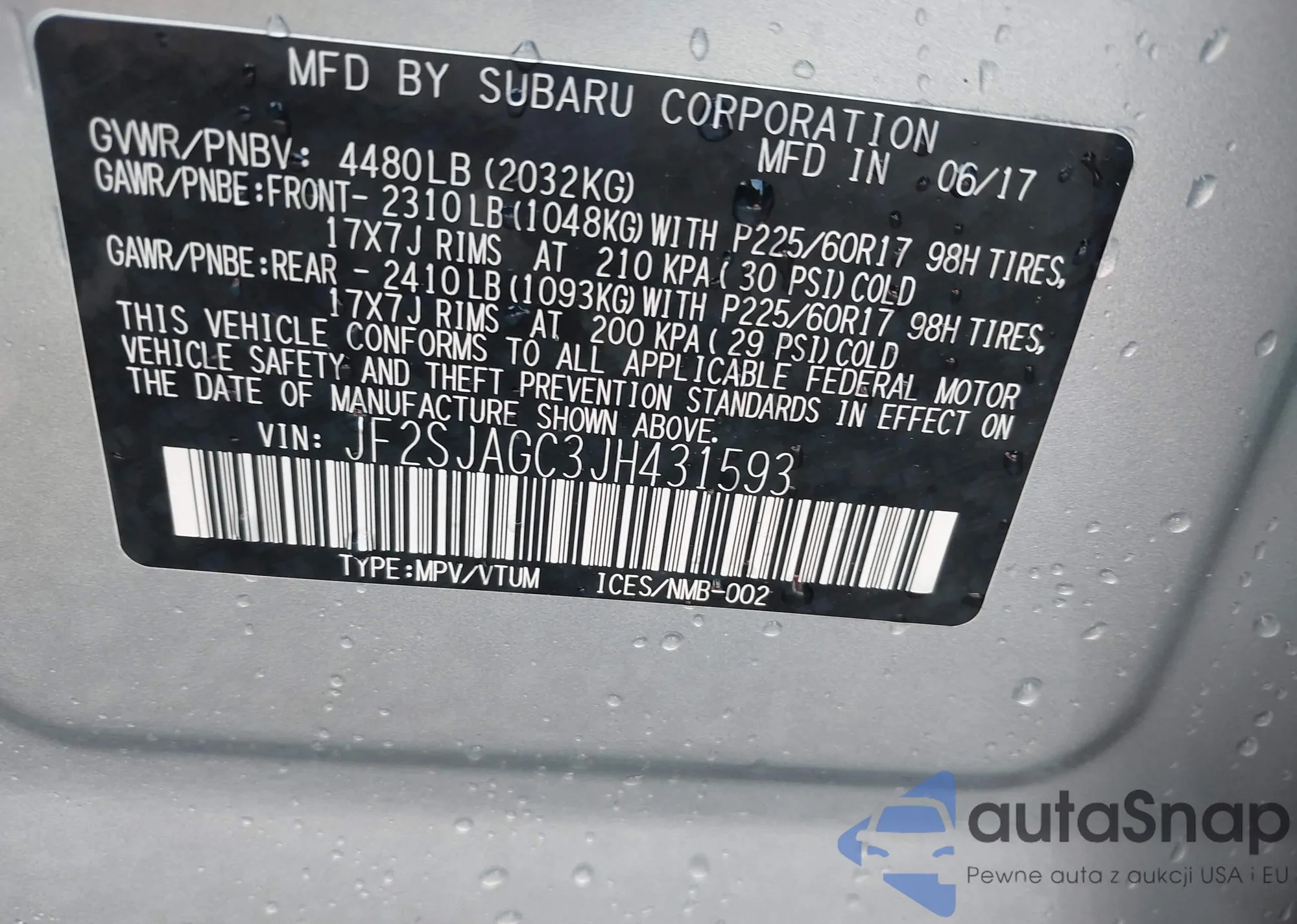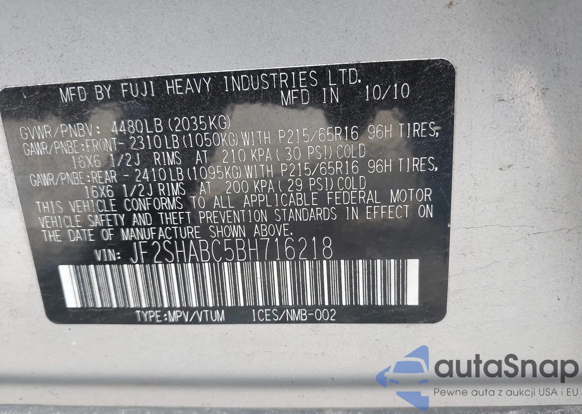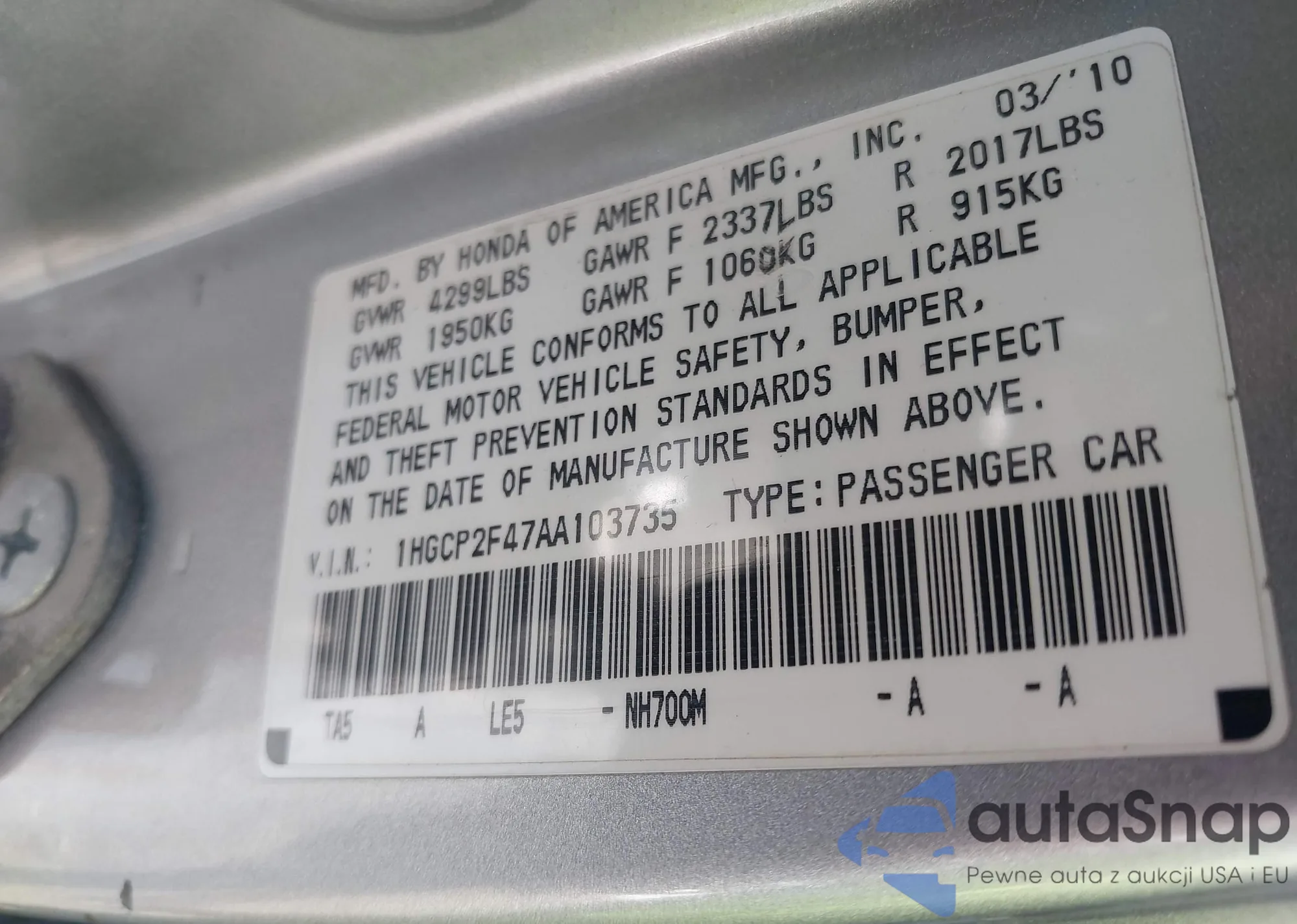 LOT: 43170768 VIN: 1HGCP2F47AA103735