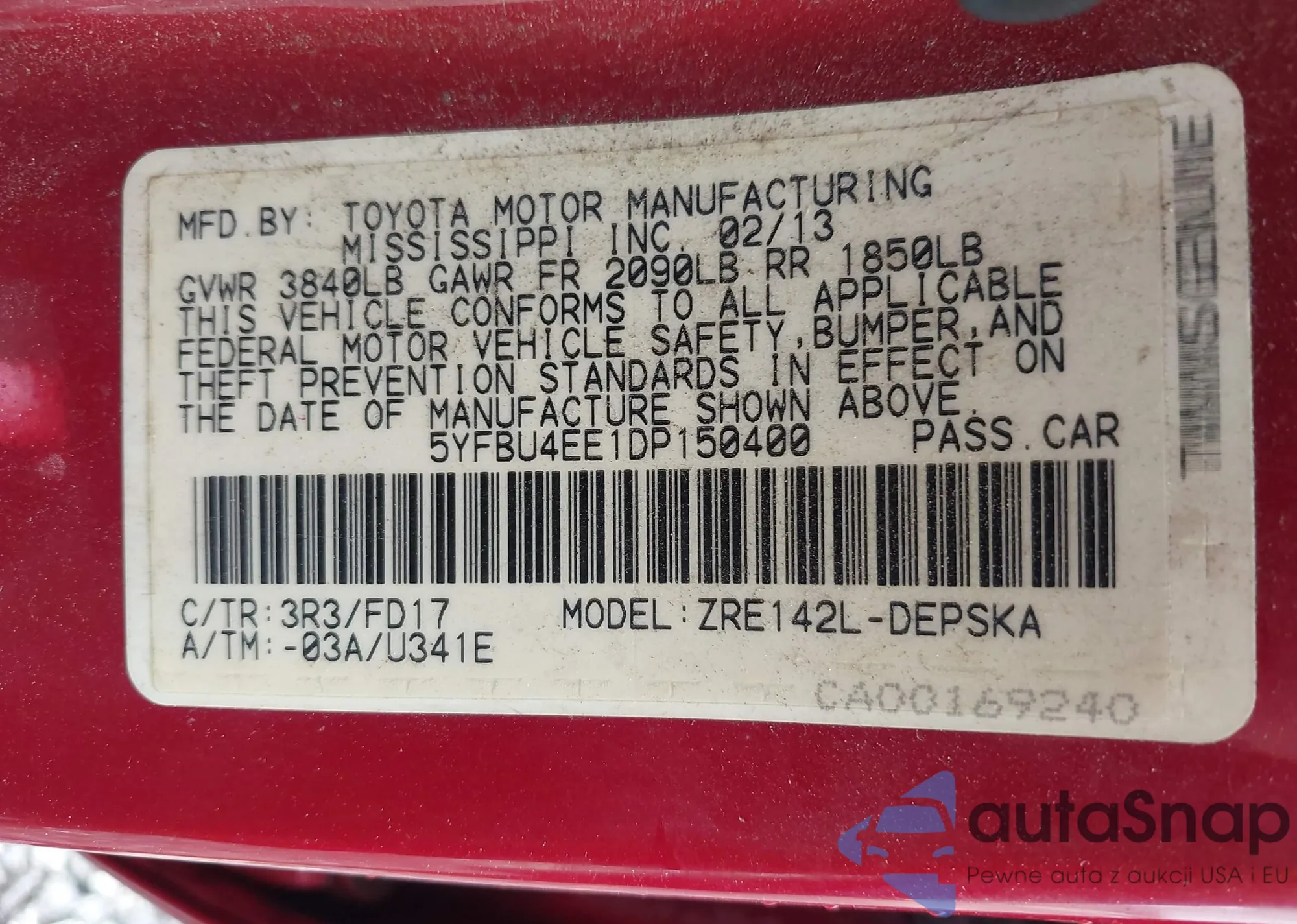 • VIN 5YFBU4EE1DP150400