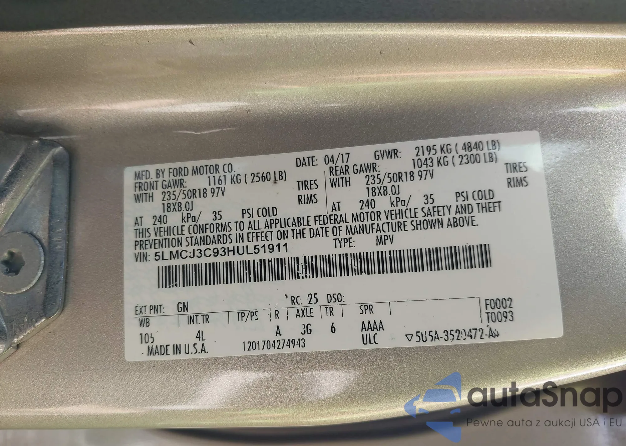 • VIN 5LMCJ3C93HUL51911