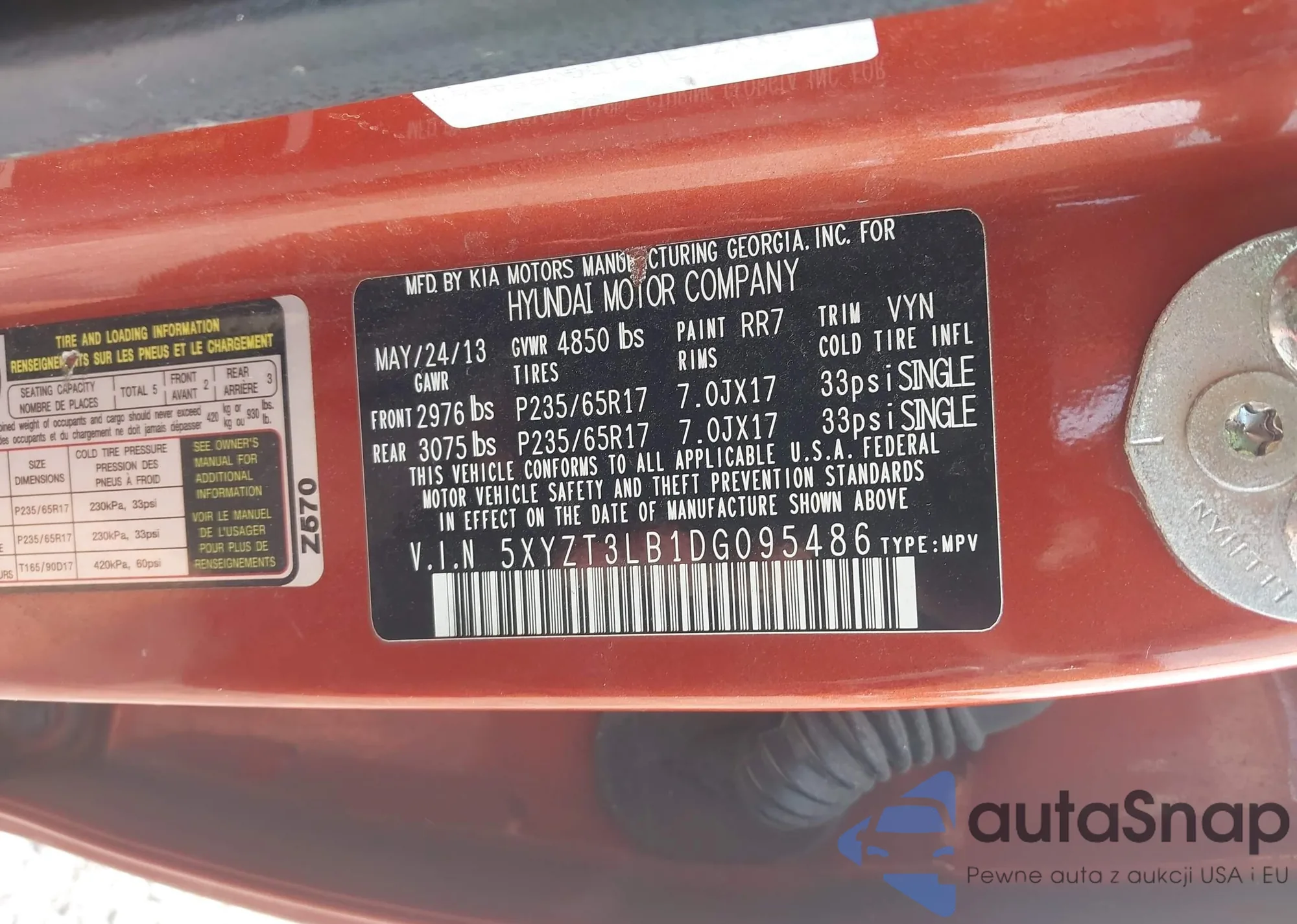 • VIN 5XYZT3LB1DG095486