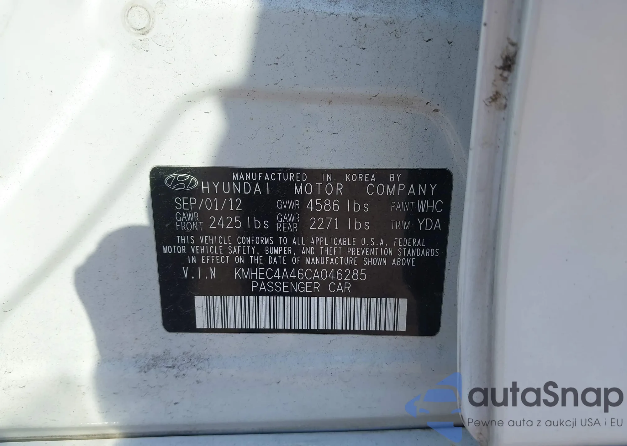LOT: 43162845 VIN: KMHEC4A46CA046285