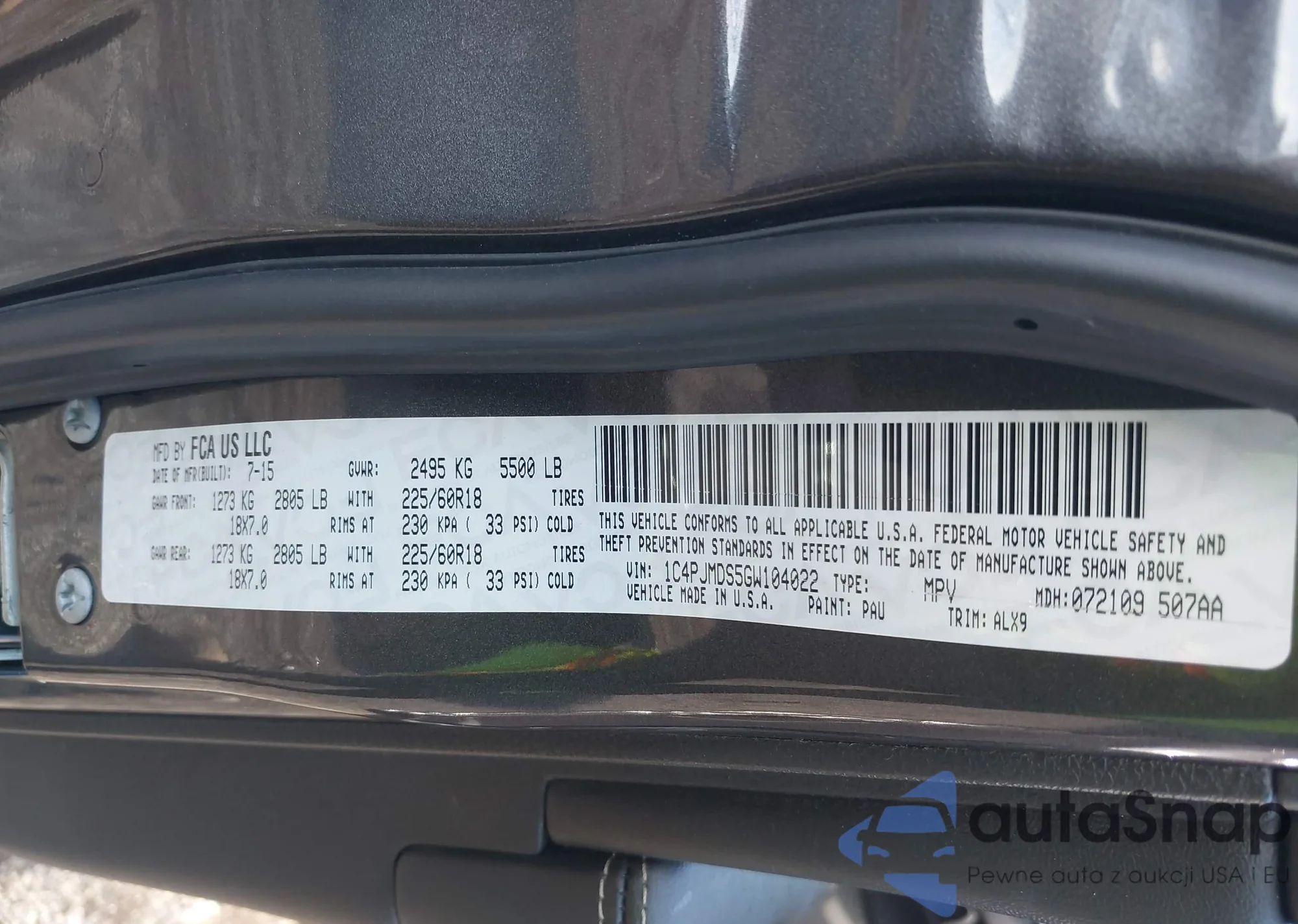 LOT: 43169690 VIN: 1C4PJMDS5GW104022