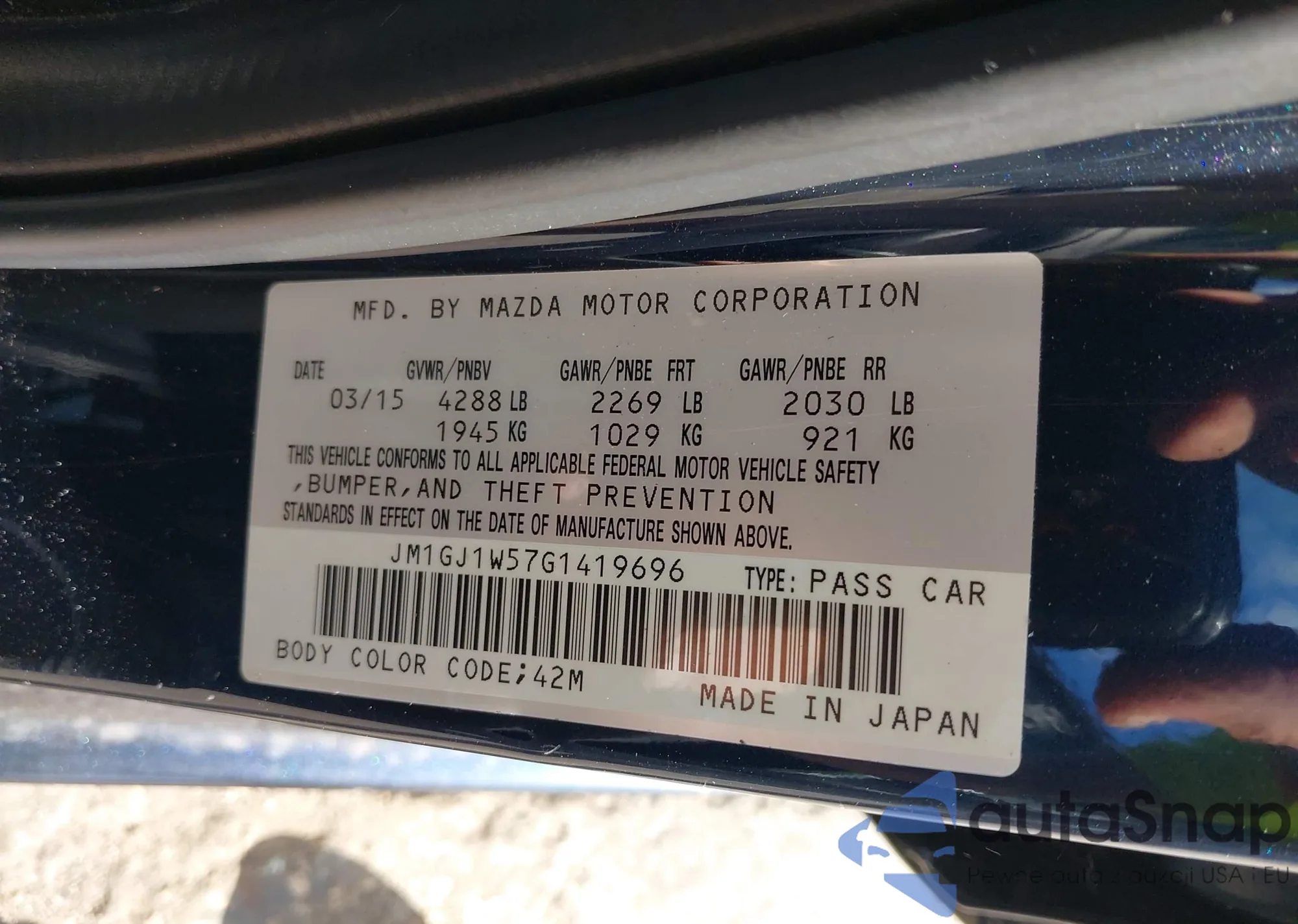 LOT: 43184411 VIN: JM1GJ1W57G1419696
