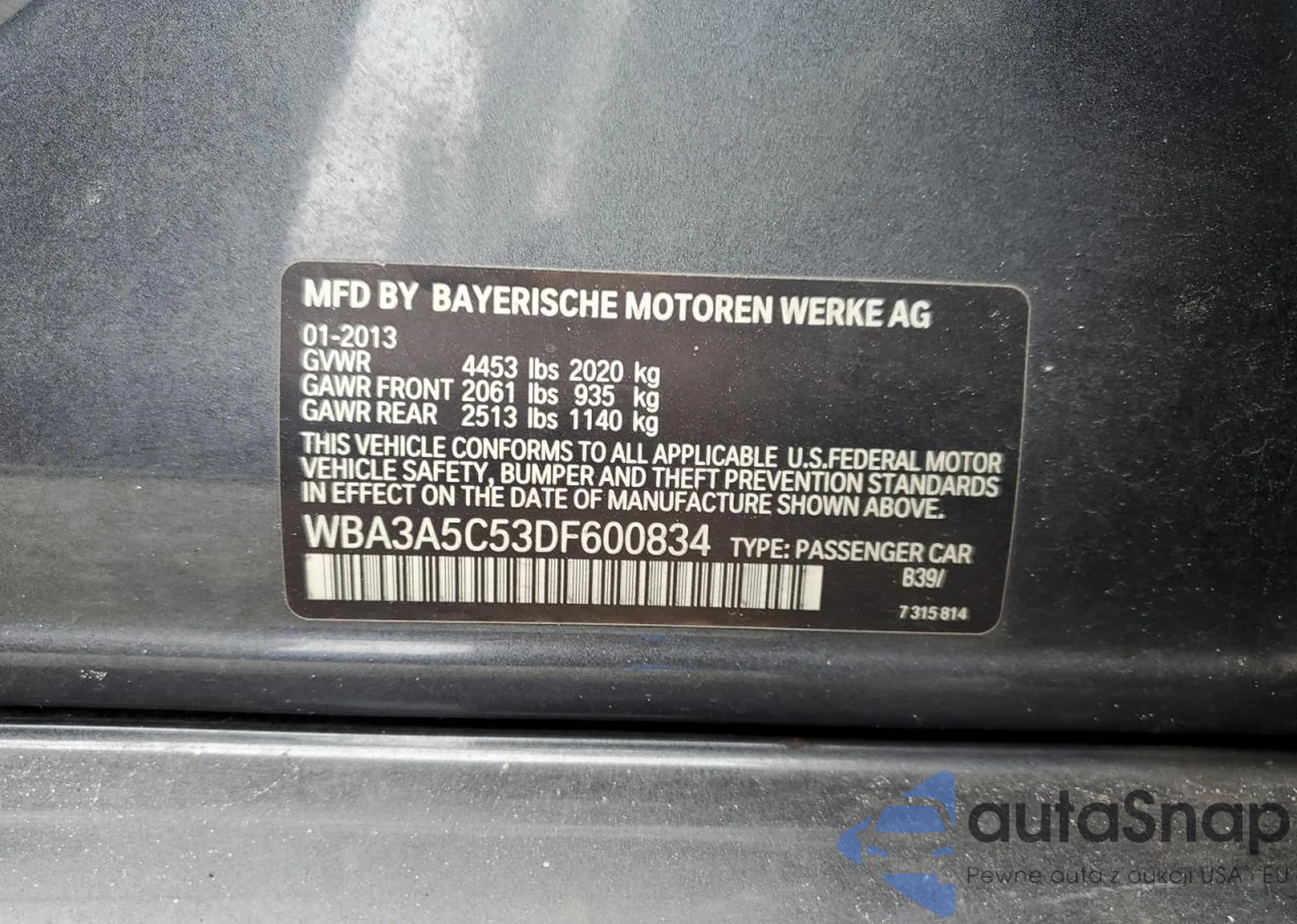 • VIN WBA3A5C53DF600834