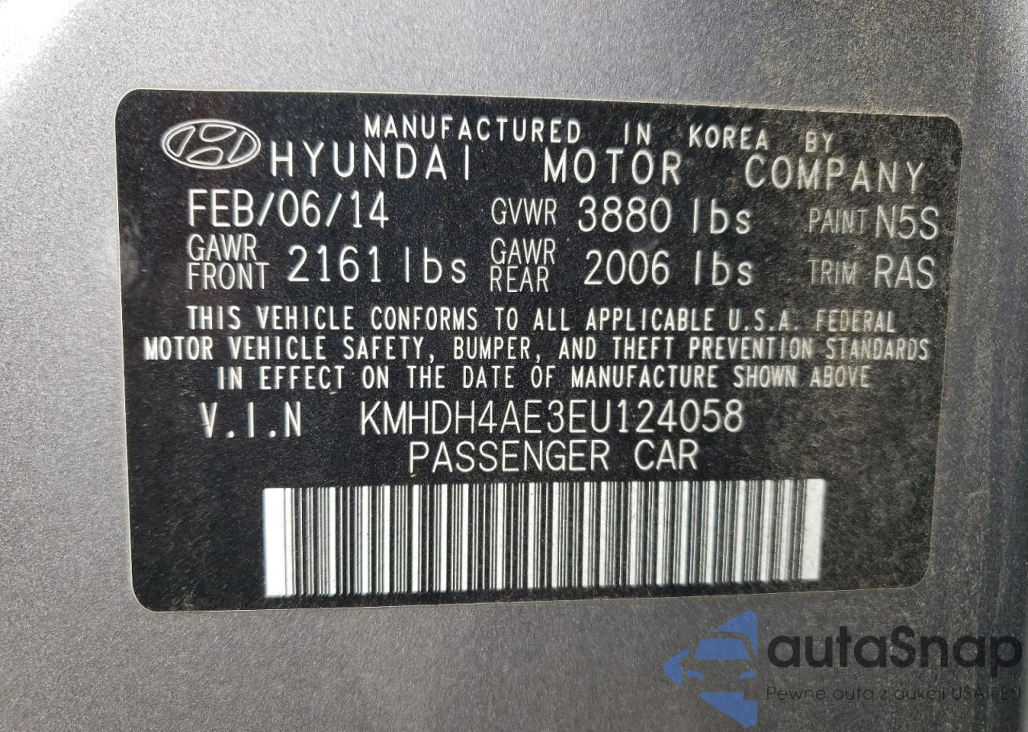 • VIN KMHDH4AE3EU124058