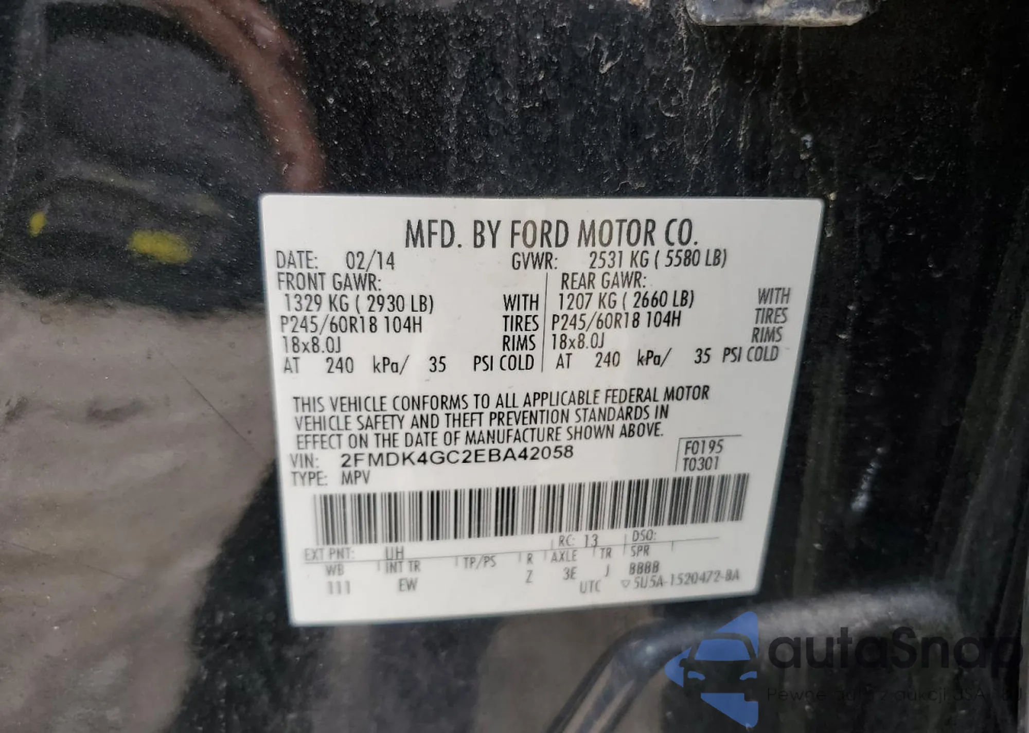 • VIN 2FMDK4GC2EBA42058
