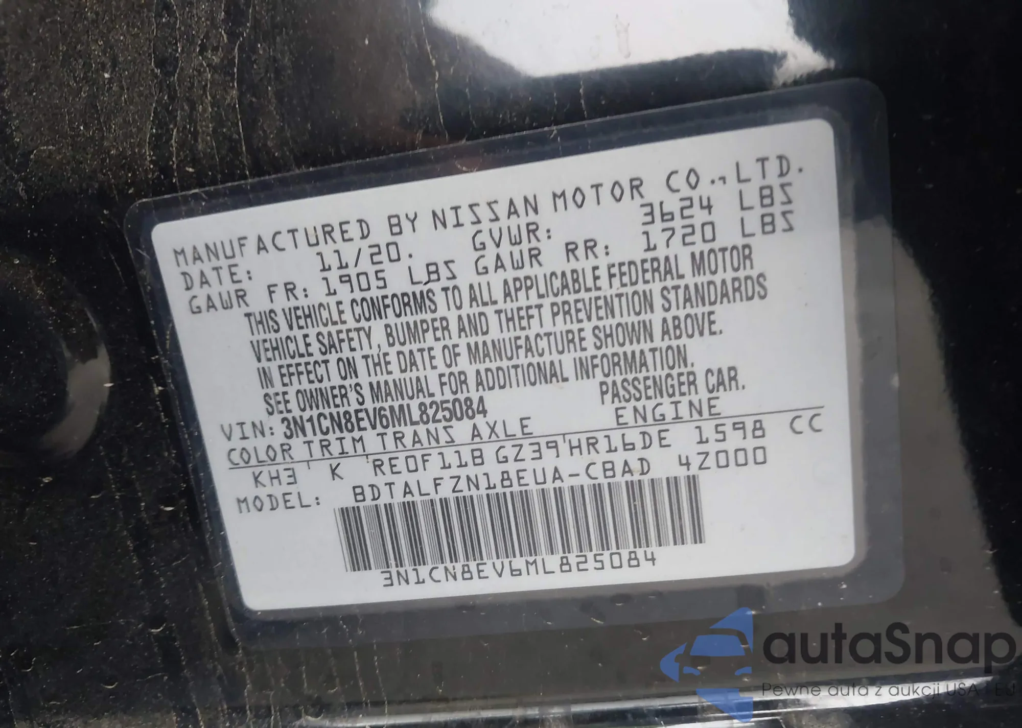 • VIN 3N1CN8EV6ML825084