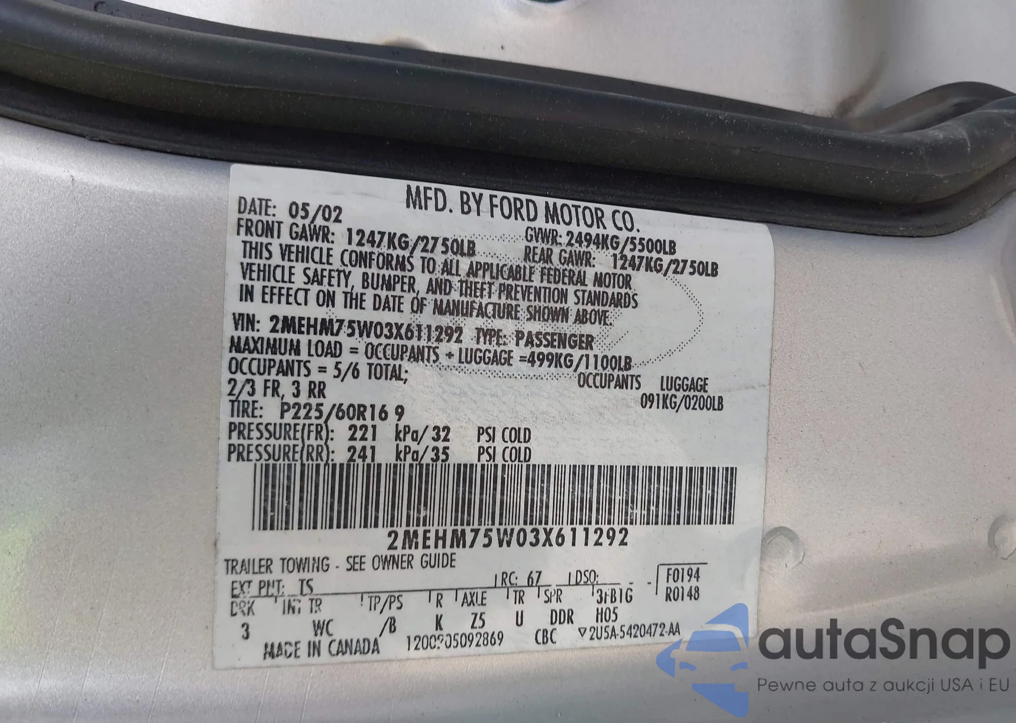 • VIN 1FAHP3F20CL221471