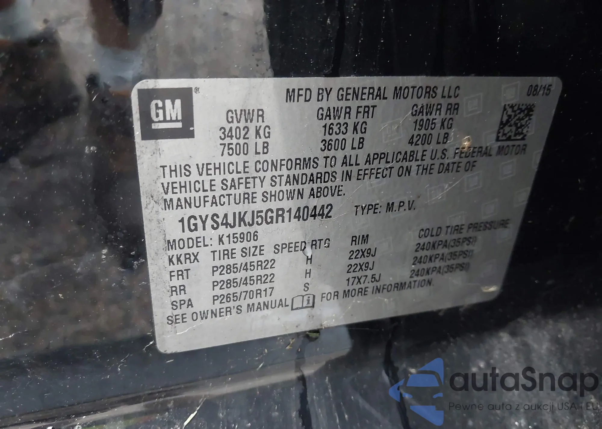 • VIN 1GYS4JKJ5GR140442