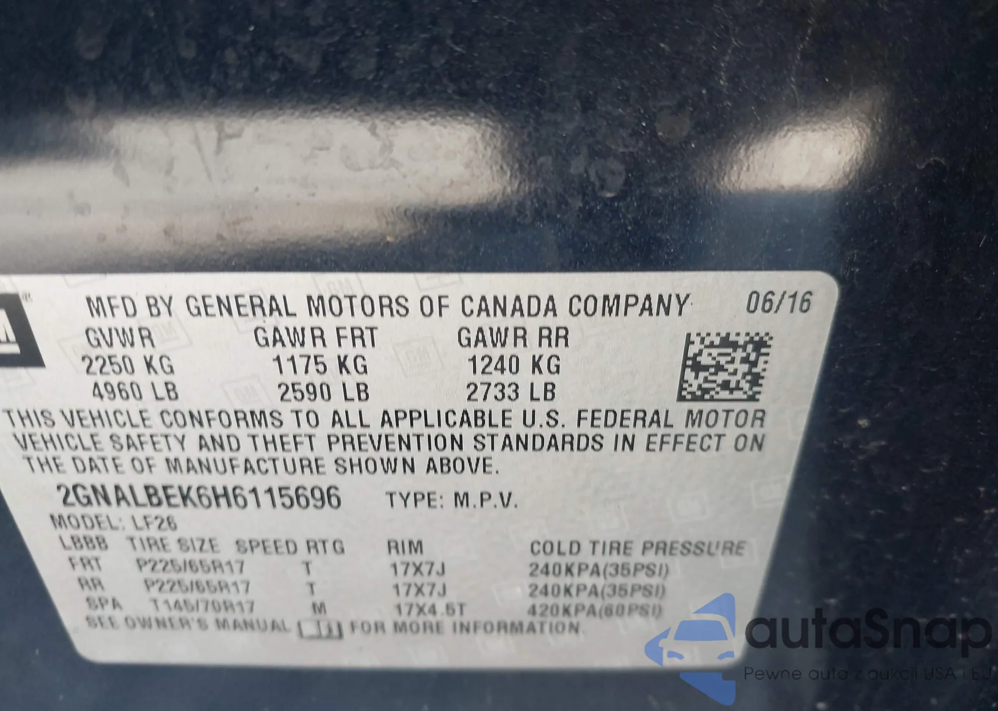 • VIN WAUFFBFL6DA181981